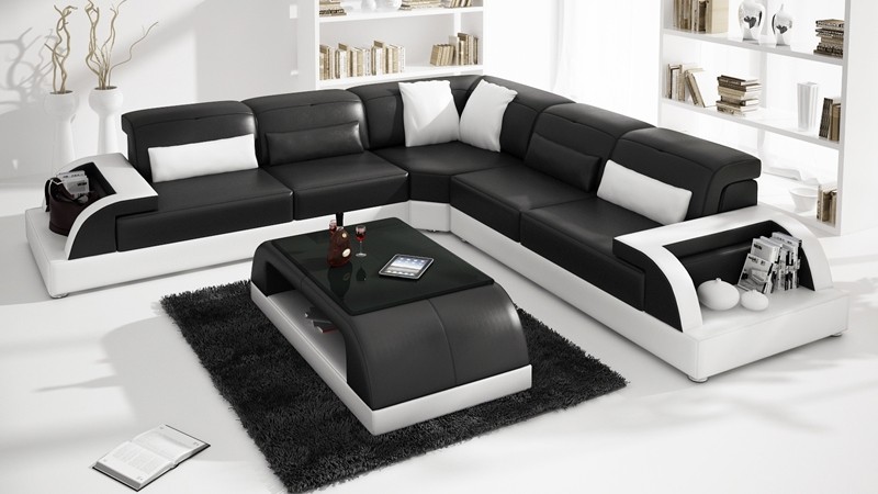 Lederen Moderne Bank Woonlandschap Leren Bankstel Bank L-Vorm Salontafel