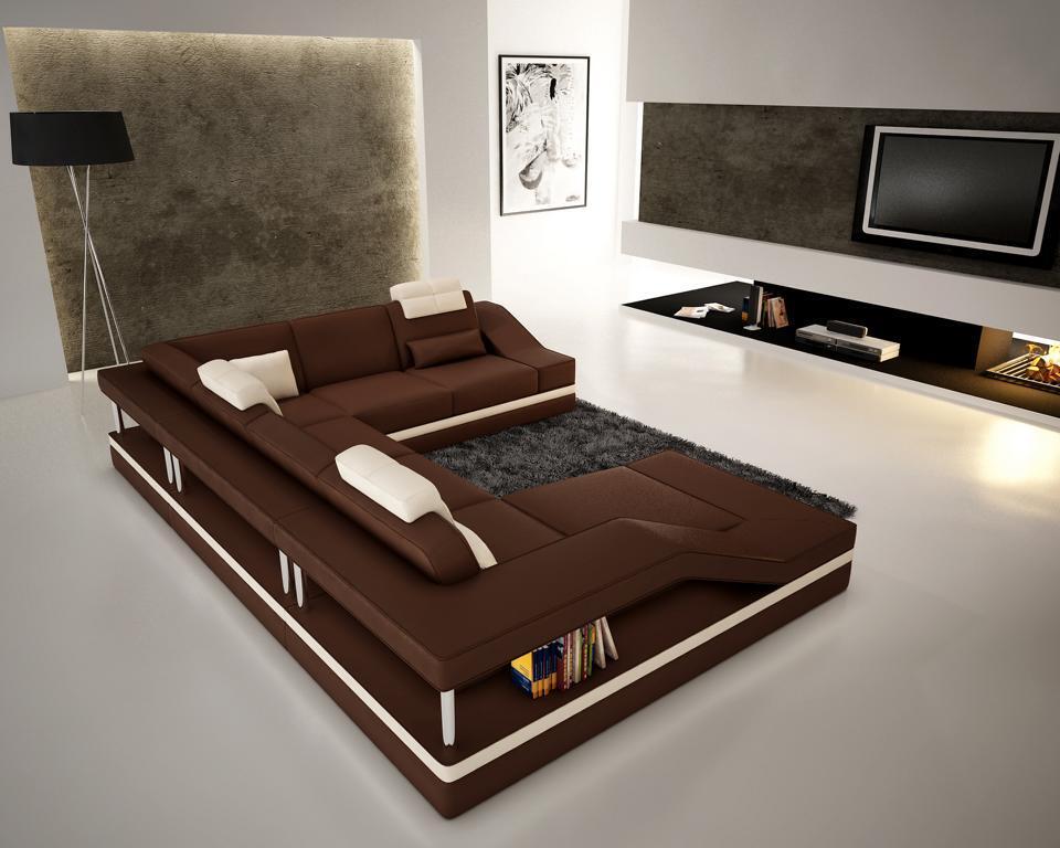 Ontwerp Hoek Groot End Sofa Bank XXL Lederen Bankstellen Decor Set