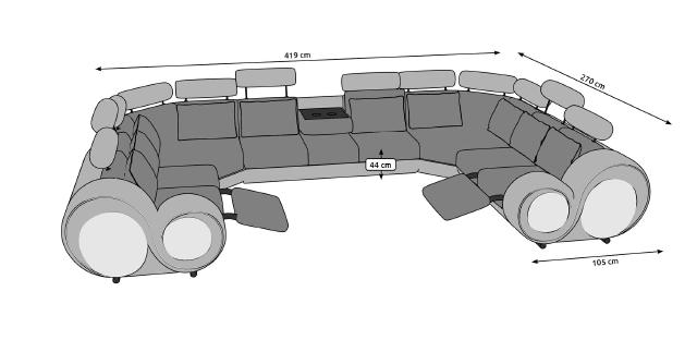 Het Ontwerp XXL woonlandschap bank met USB is een indrukwekkende toevoeging aan elke woonkamer. Met afmetingen van ca. 270 x 419 x 270 cm en een comfortabele zithoogte van ca. 44 cm biedt deze ruime hoekbank voldoende zitplaatsen voor gezellige momenten met vrienden en familie. De bank is voorzien van een handige USB-Klickautomatik met 3x USB-aansluitingen, waardoor opladen en gebruik van elektronische apparaten eenvoudig is. De bekleding is gemaakt van hoogwaardig textielstof, wat zorgt voor een luxe uitstraling en duurzaamheid. Optionele upgrades zoals een elektrische relax-fußstütze, bekerhouder fridge en soundsysteem maken deze bank een ideale keuze voor thuisbioscoopervaringen en ontspannen avonden.