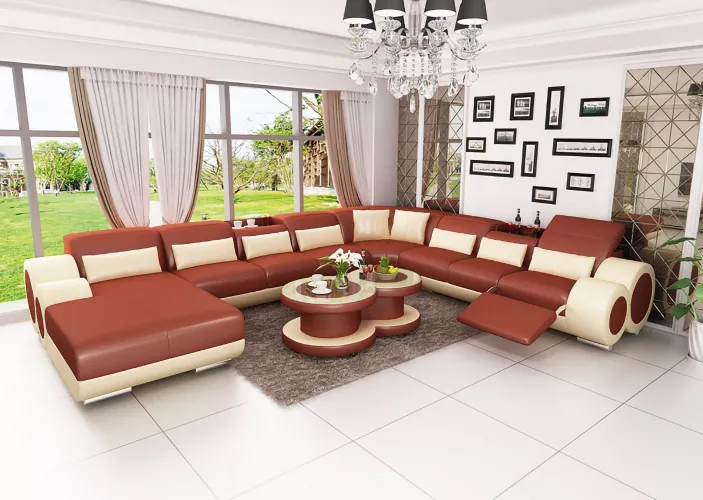 De bijgevoegde salontafel met afmetingen van ongeveer 120 x 60 x 40 cm vormt een perfecte aanvulling op deze hoekbank. Het Italiaanse rundsleder en het binnenframe van echt hout garanderen een hoge kwaliteit en duurzaamheid. Of je nu van een gezellige filmavond houdt of een elegant diner wilt organiseren, deze hoekbank en tafel bieden de ideale setting. Kies voor premium ledervezelstof voor een luxueuze uitstraling of upgrade naar premium echtleder voor een nog exclusiever gevoel. Met deze hoekbank woonlandschap haal je niet alleen een stijlvolle toevoeging aan je interieur in huis, maar ook een comfortabele en duurzame zitoplossing voor vele jaren.