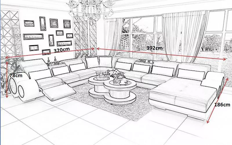 De hoekbank woonlandschap is een prachtig ontworpen bank met hoogwaardige materialen en indrukwekkende afmetingen van ongeveer 320 x 392 x 186 cm of 186 x 392 x 320 cm. Met een comfortabele zithoogte van ongeveer 42 cm en een diepte van 94 cm, zorgt deze hoekbank voor optimaal comfort tijdens het loungen. Gemaakt van premium ledervezelstof (70% leder / 30% polyester) biedt deze bank duurzaamheid en een luxe uitstraling. Optioneel is er de keuze uit verschillende bekledingsmaterialen, waaronder echt leer en textielstof, waardoor je de bank kunt aanpassen naar jouw persoonlijke voorkeur.