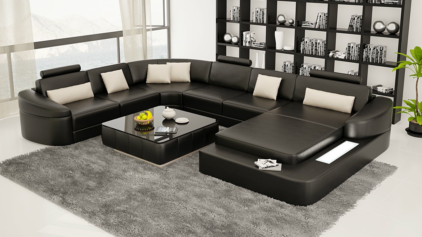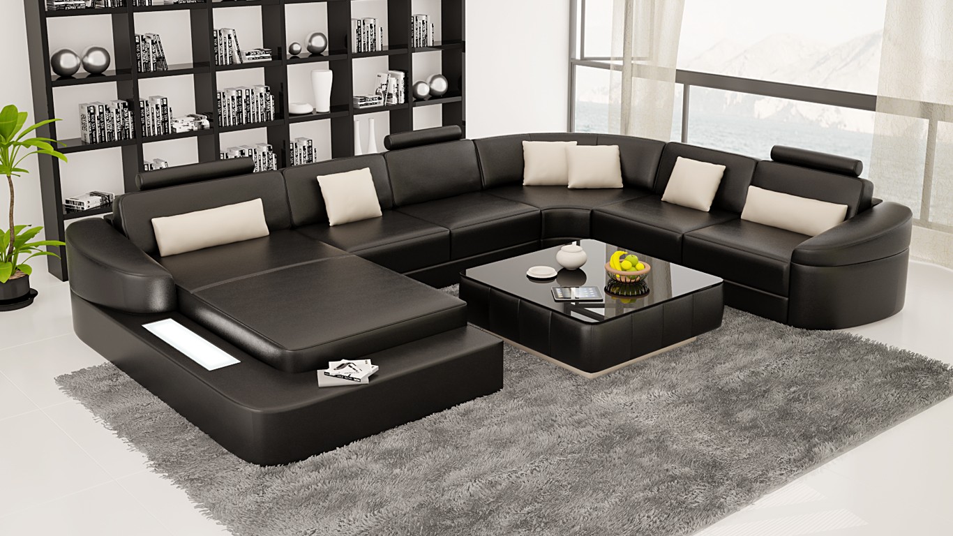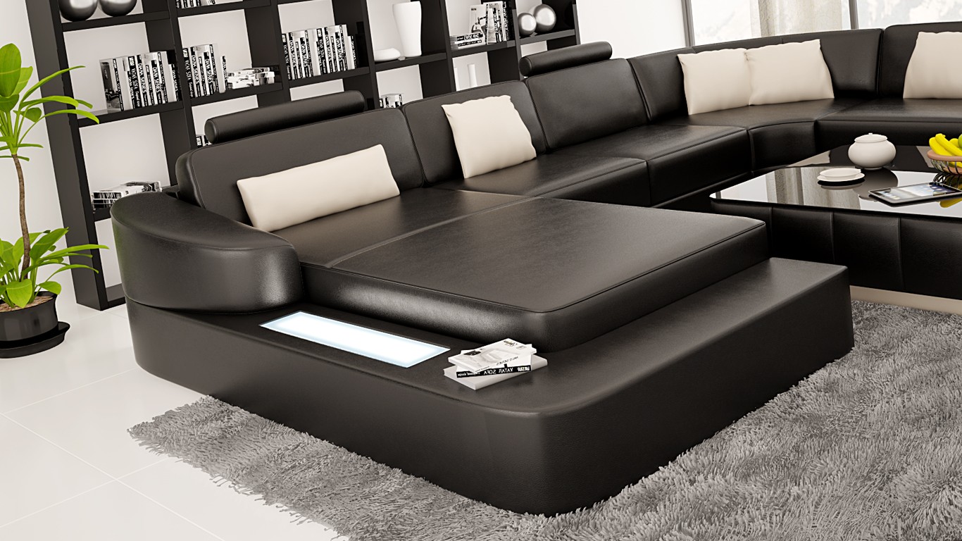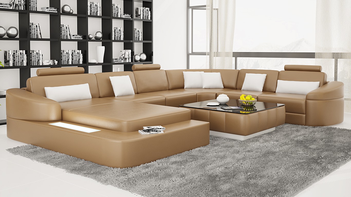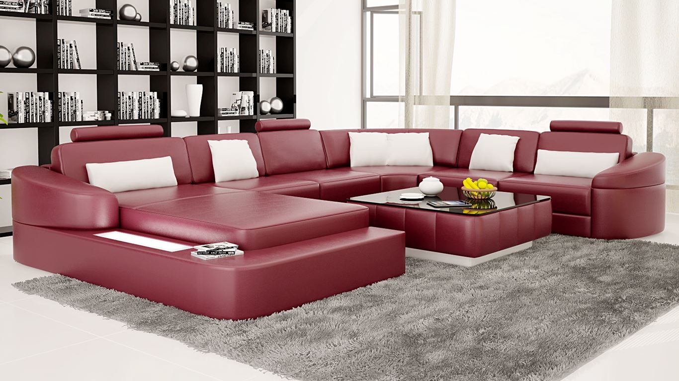 Lederen moderne bank woonlandschap ledersofa bankstel meubels sofa U-vorm nieuw