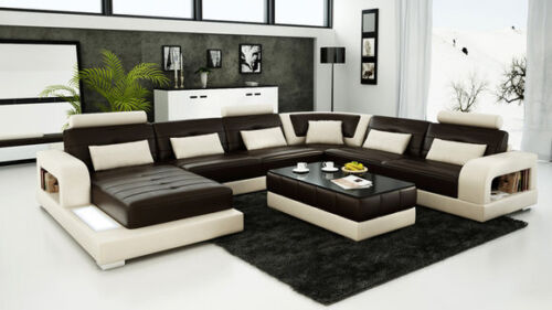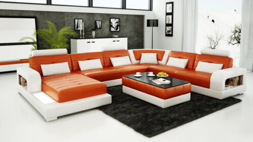 Lederen bank + USB bank woonlandschap hoek set design modern gestoffeerde U vorm