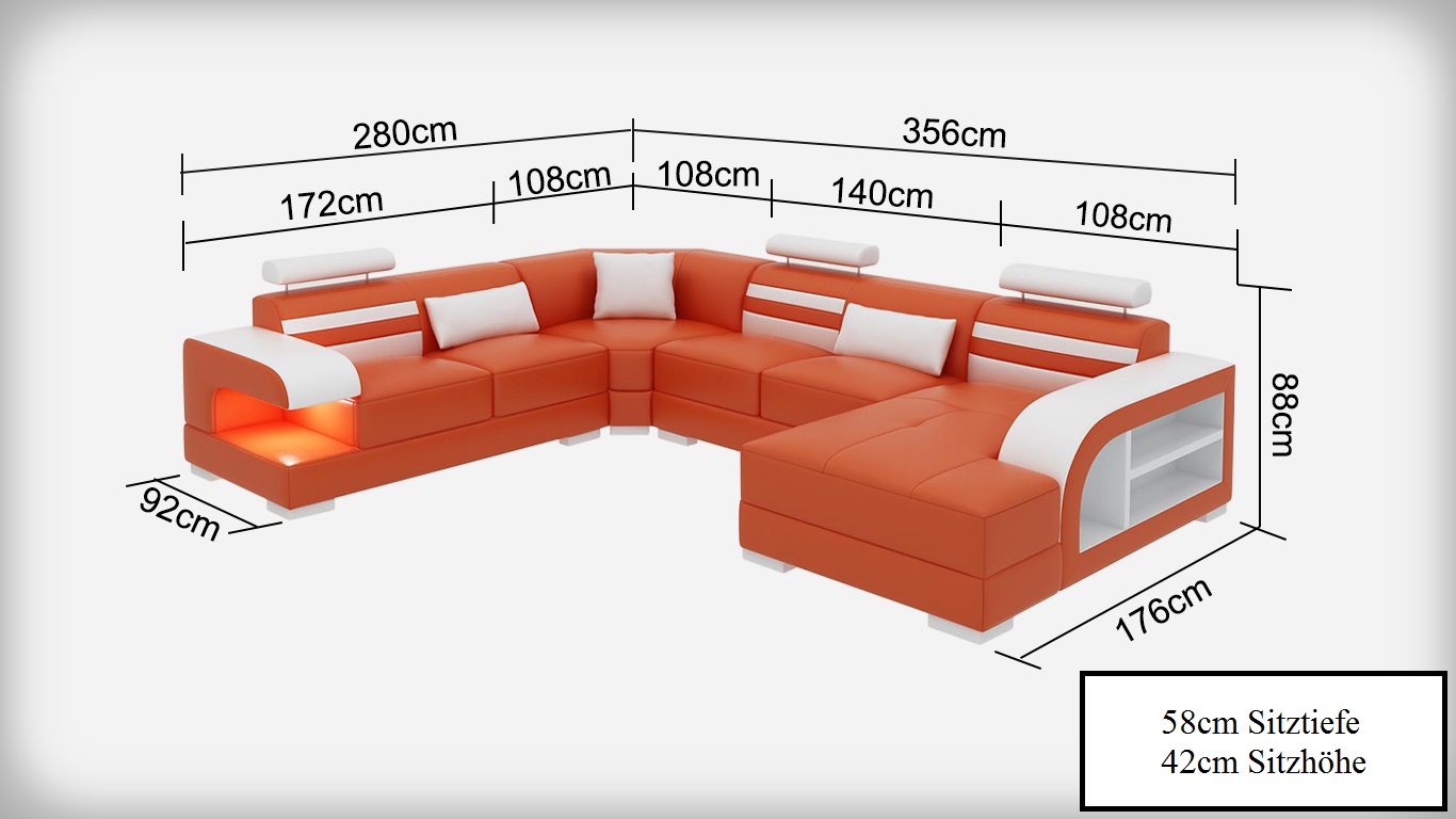 Dit moderne hoekbankstel, genaamd 'Leren bank bank woonlandschap hoekbank hoekbankstel design modern bank + USB nieuw', is een stijlvolle toevoeging aan elk hedendaags interieur. Met premium Italiaans runderleder en een mix van 70% leer en 30% polyester, straalt deze bank luxe en comfort uit. De bank is voorzien van een USB-Klickautomatik (3xfach Steckplatz) INCLUSIEF, waardoor het eenvoudig is om apparaten op te laden terwijl je ontspant. Met afmetingen van ca. 176 x 356 x 280 cm of 280 x 356 x 176 cm biedt deze hoekbank ruime zitruimte voor iedereen.
