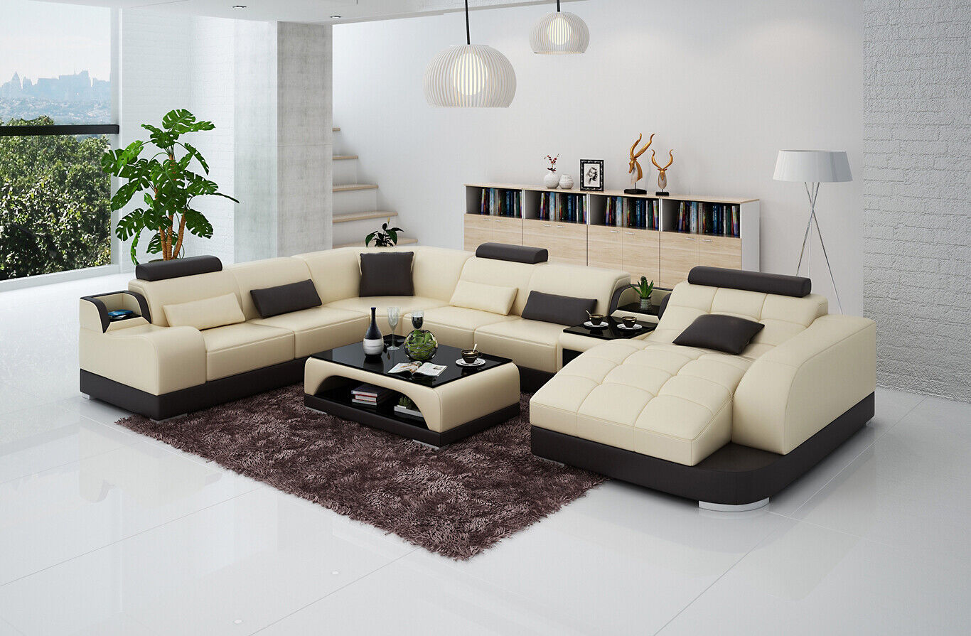 Met de Leren bank ontwerpersbank U-vormige woonlandschap bank bekleding hoekbank haal je een stijlvol en luxueus meubelstuk in huis dat niet alleen zorgt voor comfort, maar ook een verfijnde uitstraling toevoegt aan je interieur. Deze hoekbank is perfect voor gezellige avonden met vrienden en familie of om heerlijk te ontspannen na een lange dag werken. Het design van de bank zorgt voor een eigentijdse touch in elke woonkamer.
