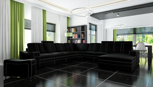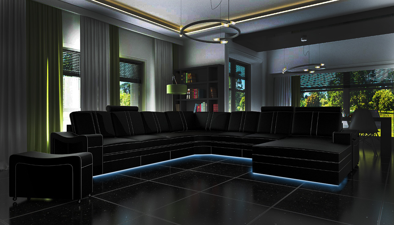 Lederen bank, USB, woonlandschap, hoekbank, XXL leren bankstel