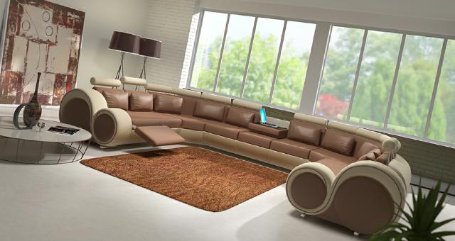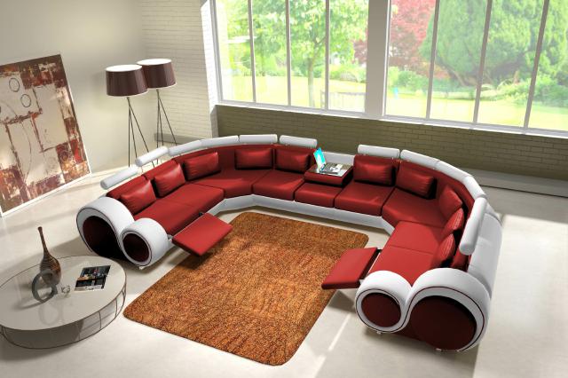 Leren bank, stoffen bank, hoekbank, gestoffeerde bank, XXL woonlandschap.