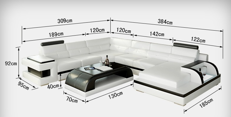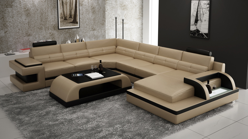 Hoekbank, woonkamermeubilair, U-vormige hoekbank.