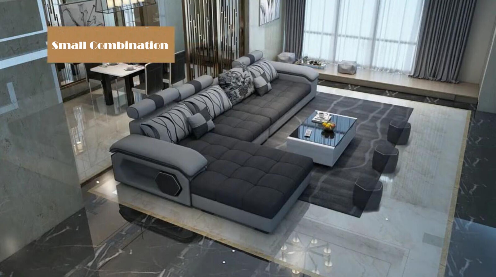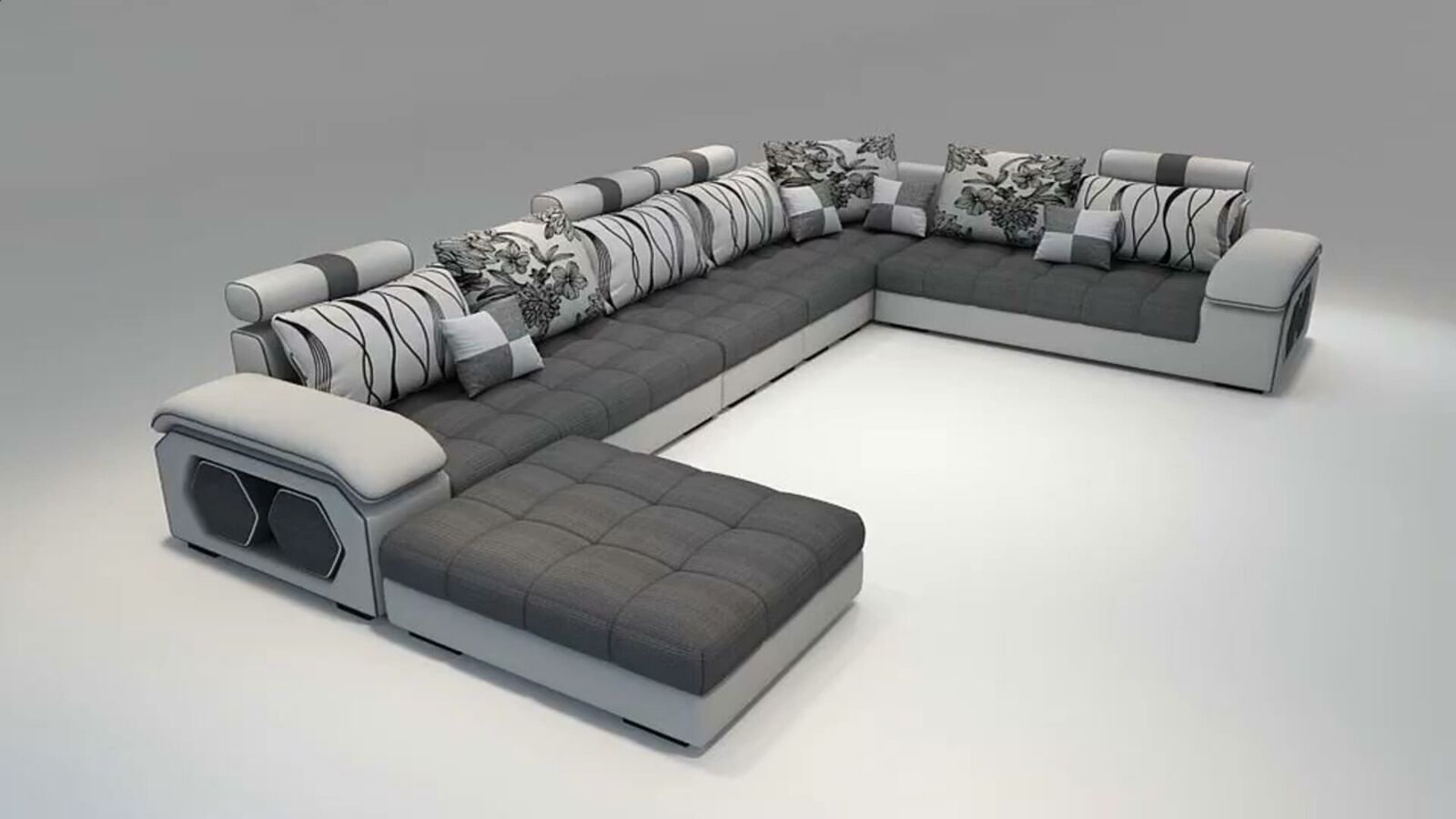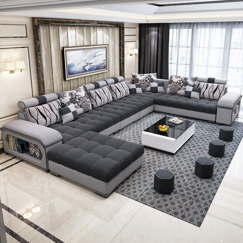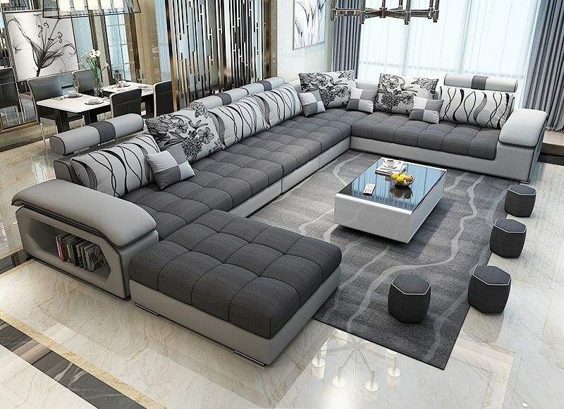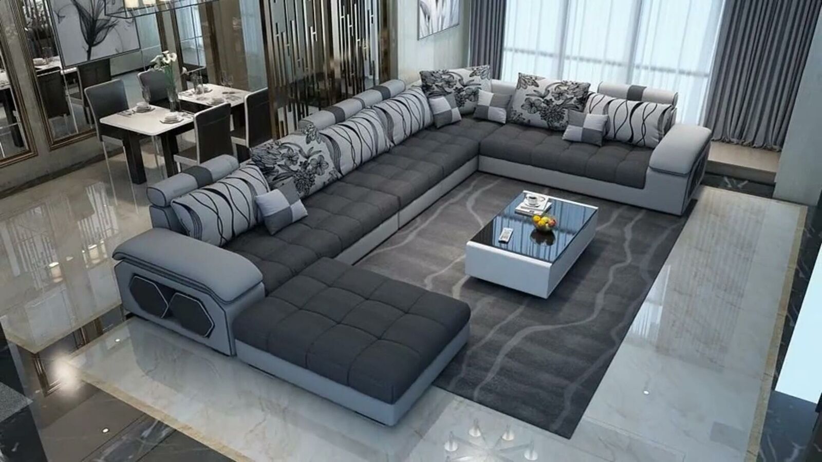 Woonlandschap hoekbank U-vorm bankstel van leer design bankstel van textiel