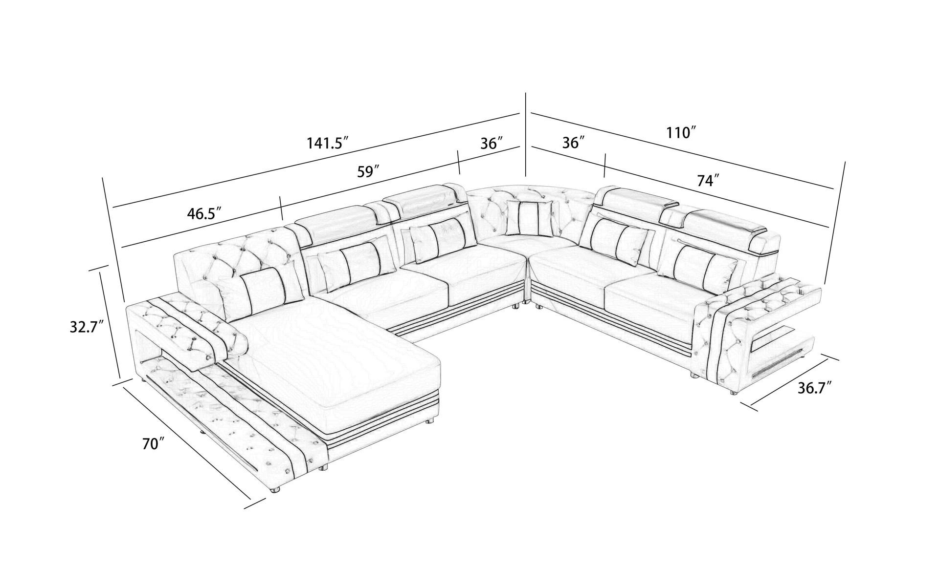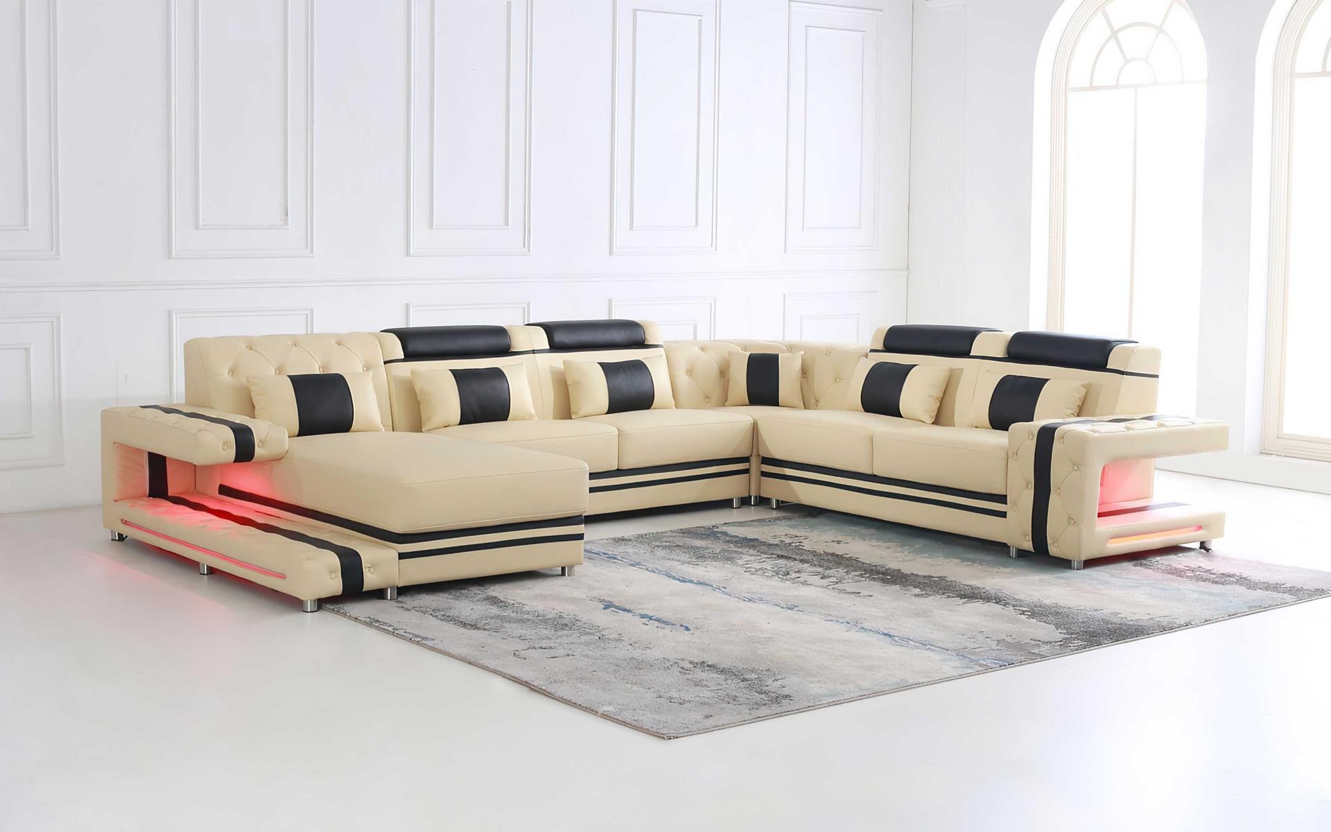 Lederen bekleding zitplaats ontwerp modern hoekbankstel bankstel woonlandschap U-vorm USB LED