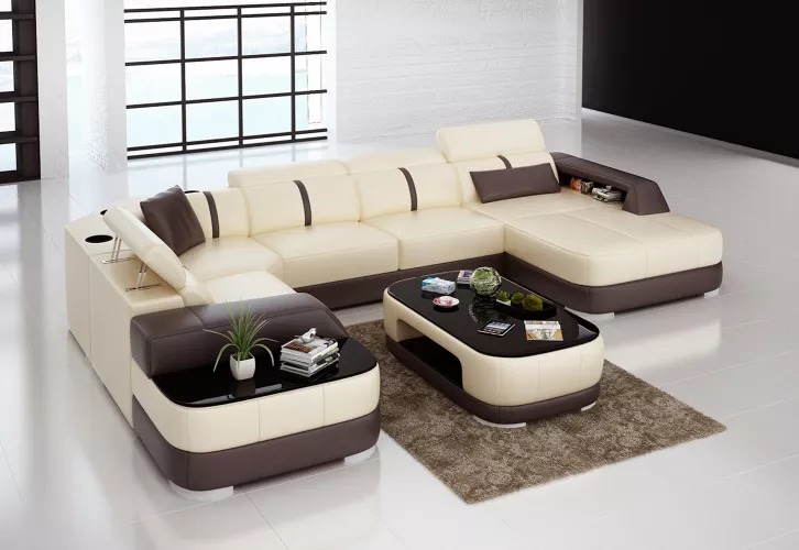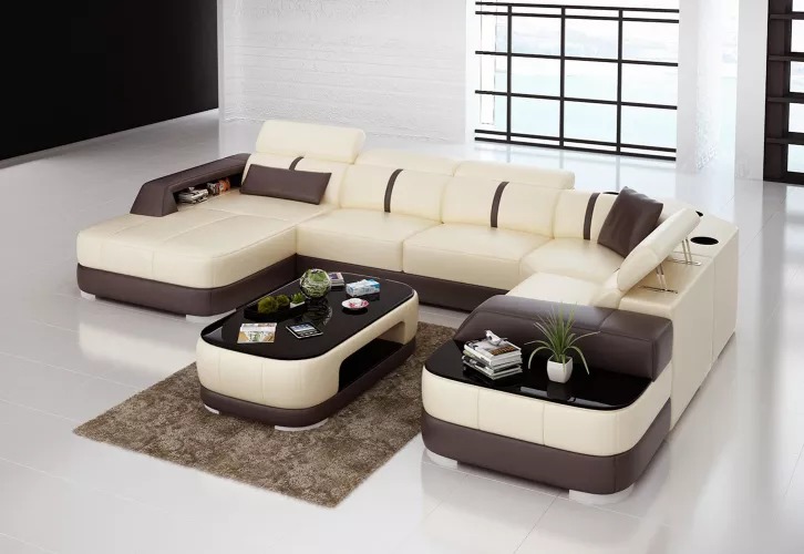 Möbelset, hoekbank en tafel, hoogwaardige materialen, moderne stijl