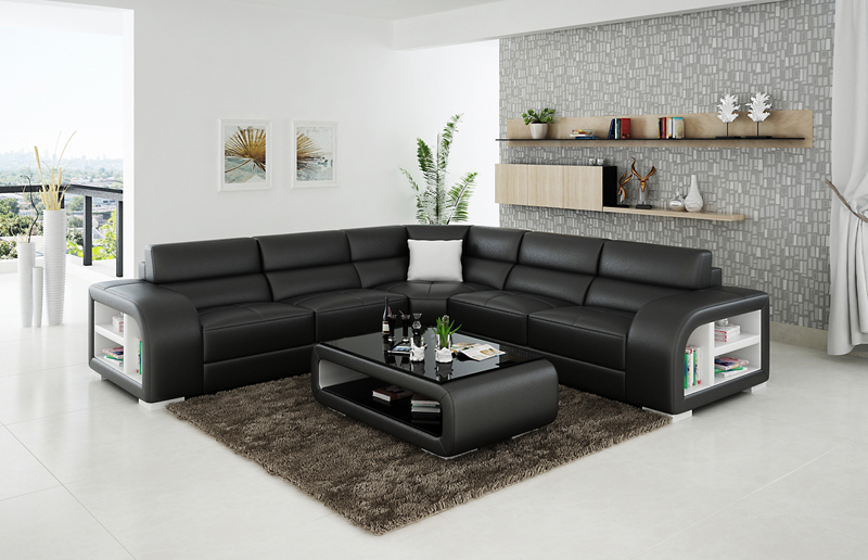 Lederen bank Bank woonlandschap Decor Modern Hoekbank Design Set