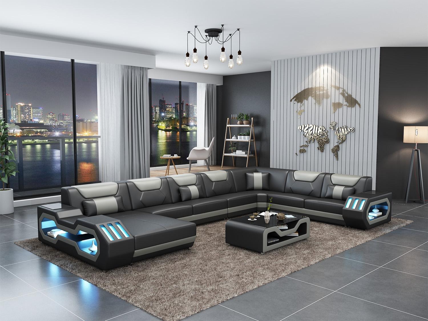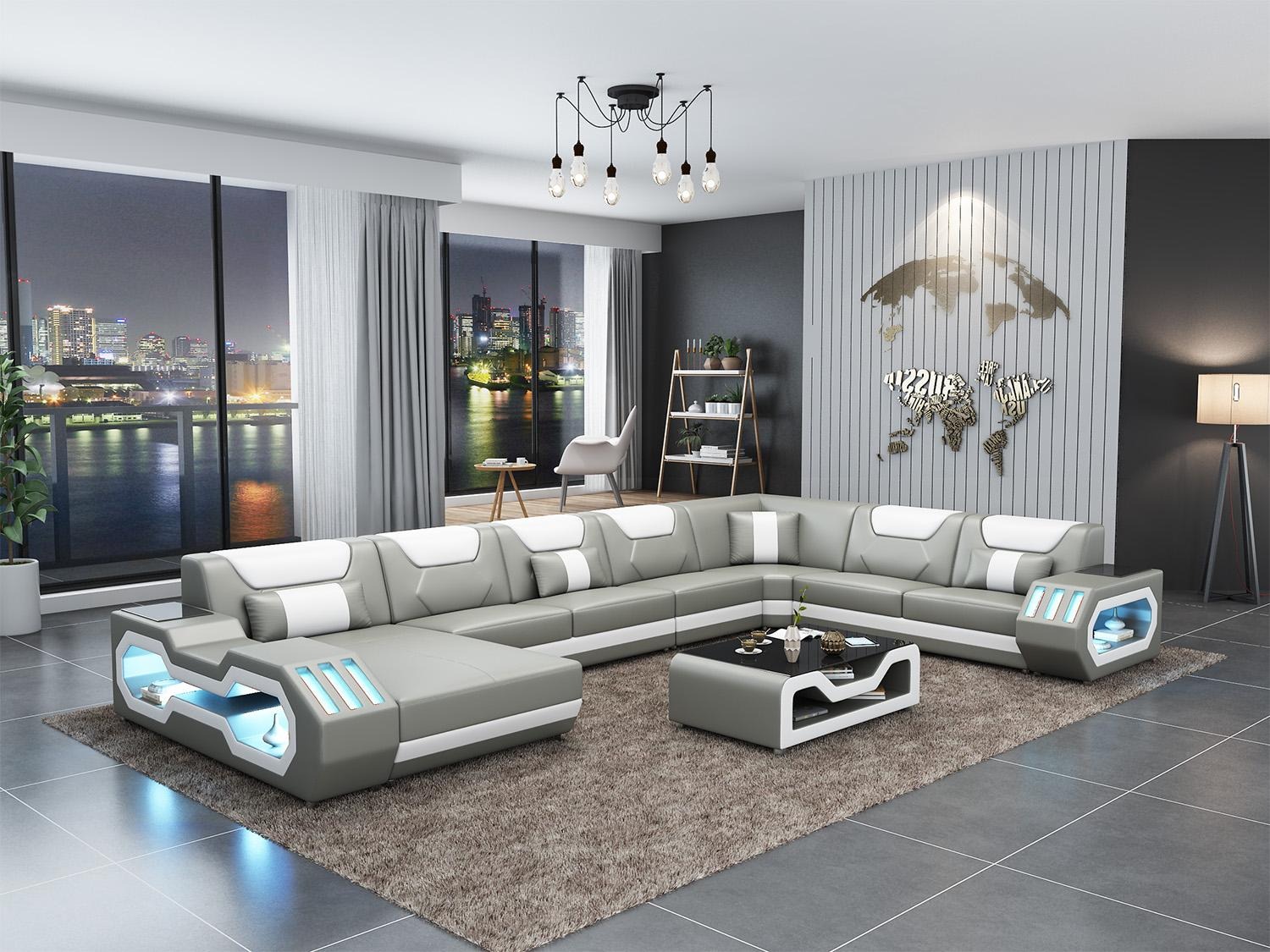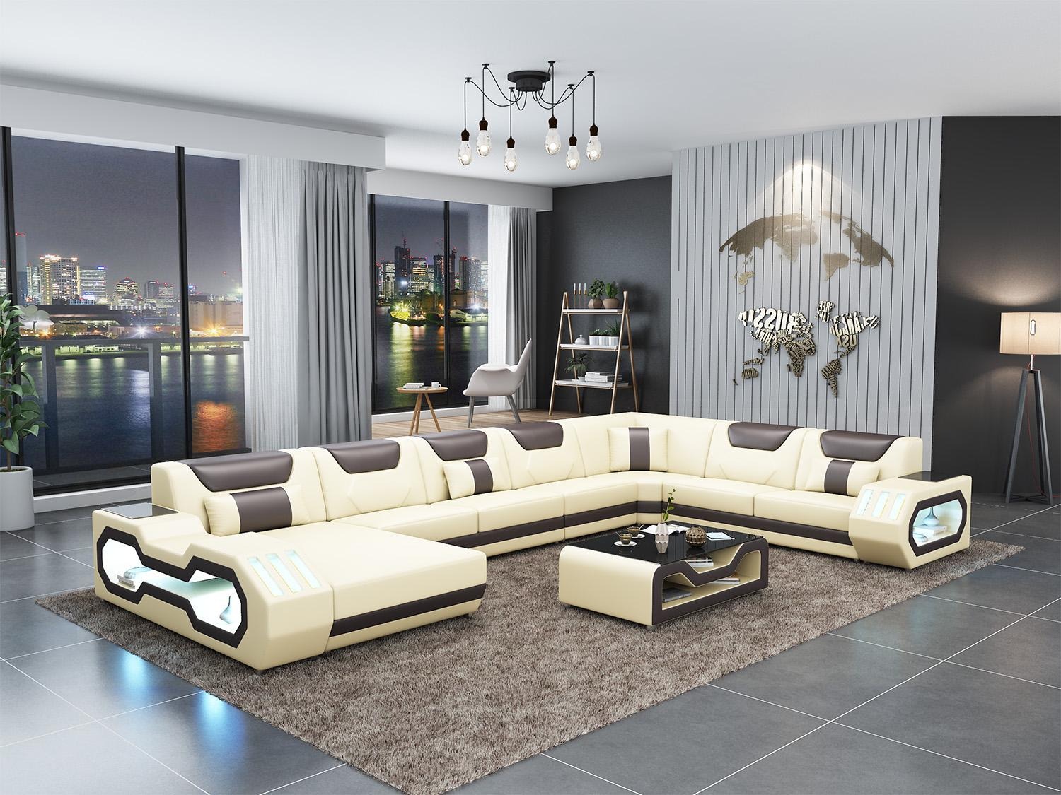 Koop een hoekbank in U-vorm, voordelig, met lederen bekleding, bank voor de woonkamer.