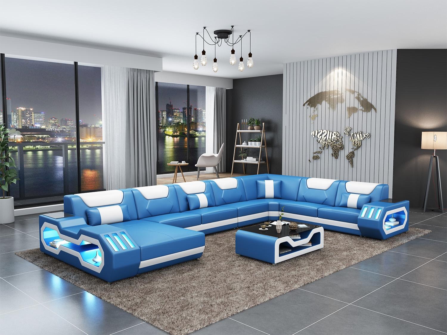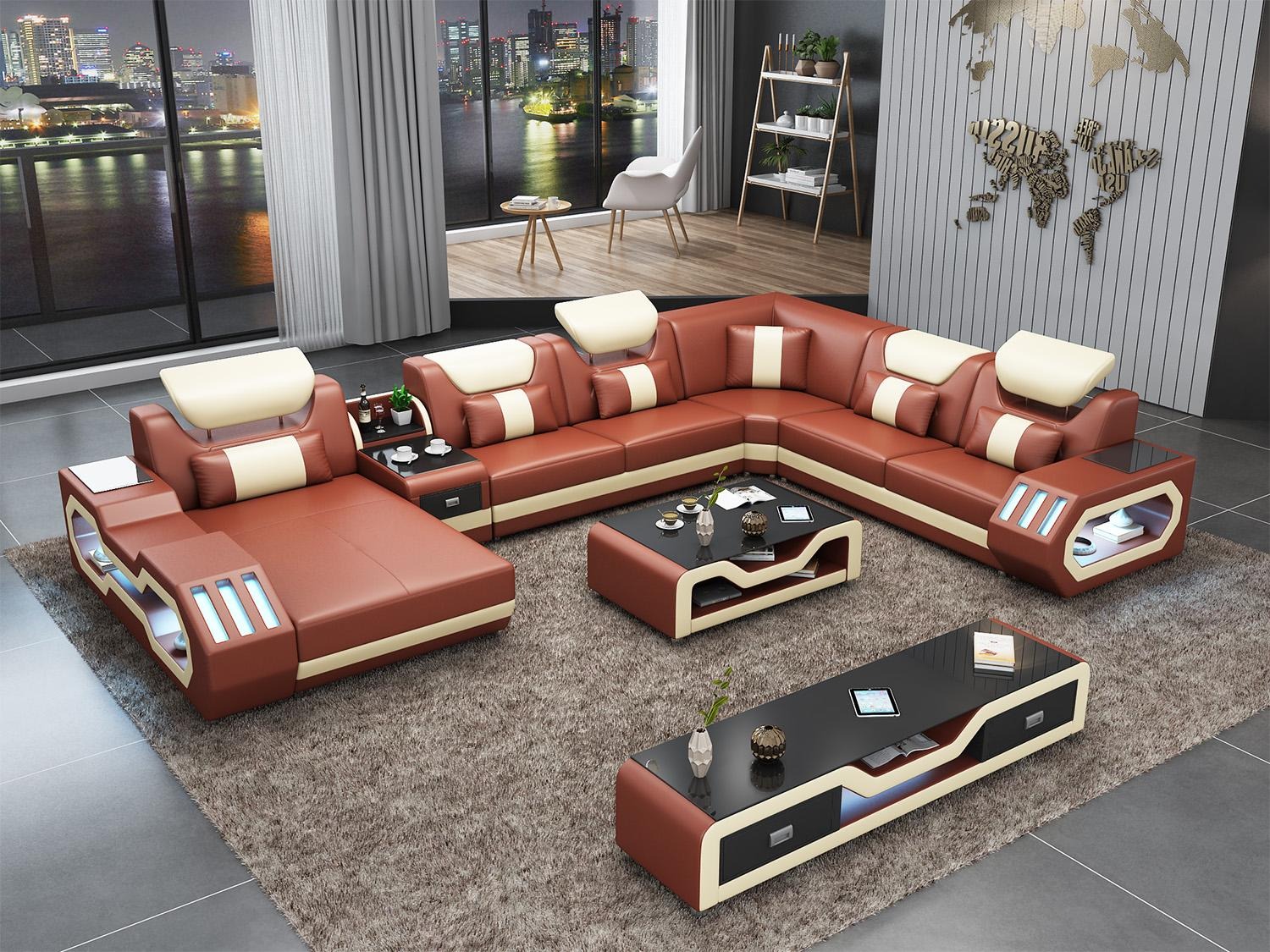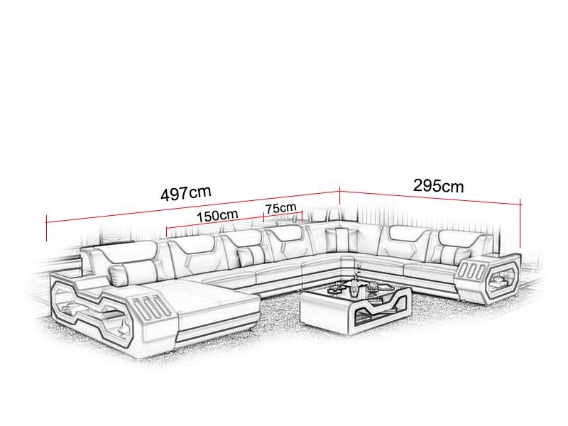 Optioneel biedt deze hoekbank extra functies zoals een elektrische relaxvoetsteun en een soundsysteem via Bluetooth voor een nog betere loungesfeer. Personaliseer je bank met een kleur naar keuze en kies uit premium bekledingsmaterialen zoals echt leder uit Italië. Met onderbodenverlichting en afstandsbediening voor kleurverandering voegt deze hoekbank een stijlvolle en moderne touch toe aan je woonkamer. Het binnenframe van echt hout zorgt voor stevigheid en duurzaamheid, terwijl het Italiaanse rundleder een luxe uitstraling geeft die jarenlang meegaat. Kortom, de Leren hoekbank set gestoffeerde U-vorm bank is de perfecte balans tussen comfort, stijl en functionaliteit voor elke woonruimte.