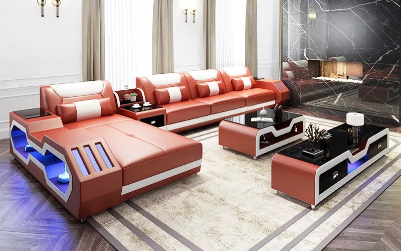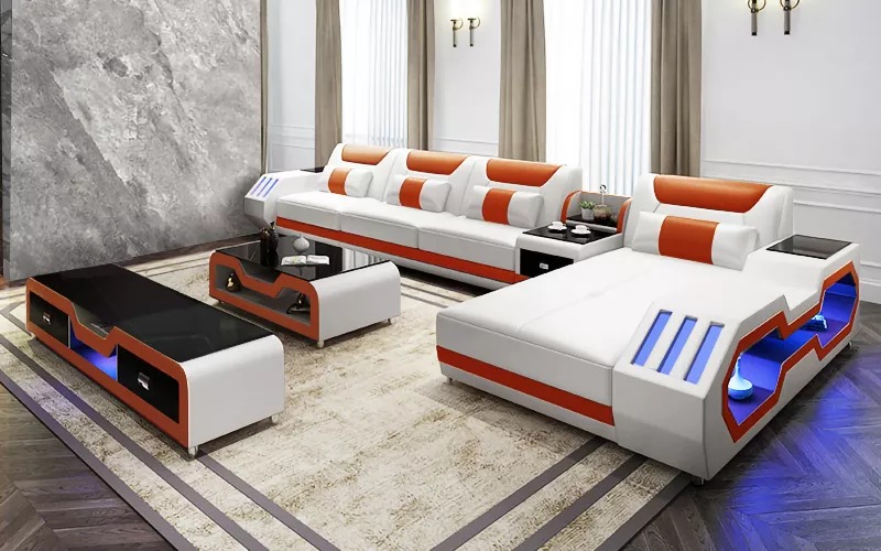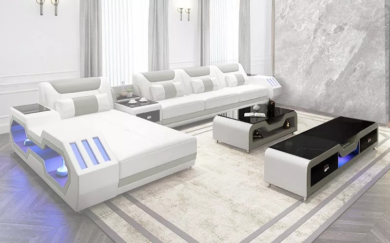 Leren bankstel LED verlichte Designer Hoekbank Gestoffeerde Hoekbank Bank 2-delig.
