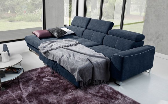 Hoekbanken, blauwe hoekbank, comfortabele hoekbank