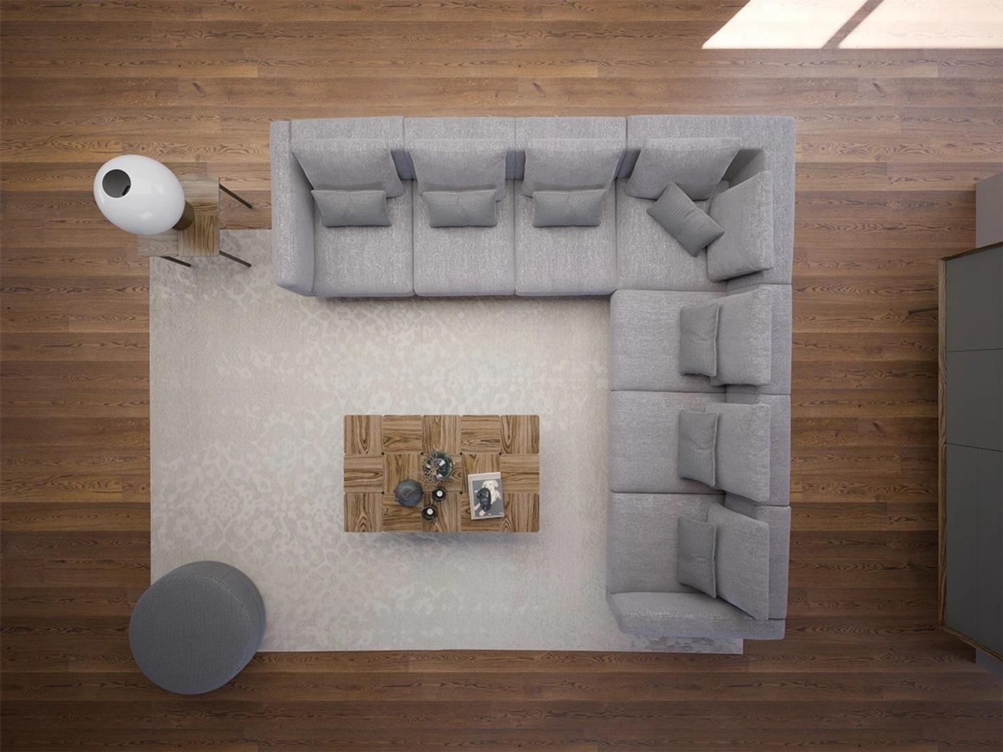 Nieuwe compleet meubel hoekbank L-vorm textiel inrichting woonkamer hout salontafel