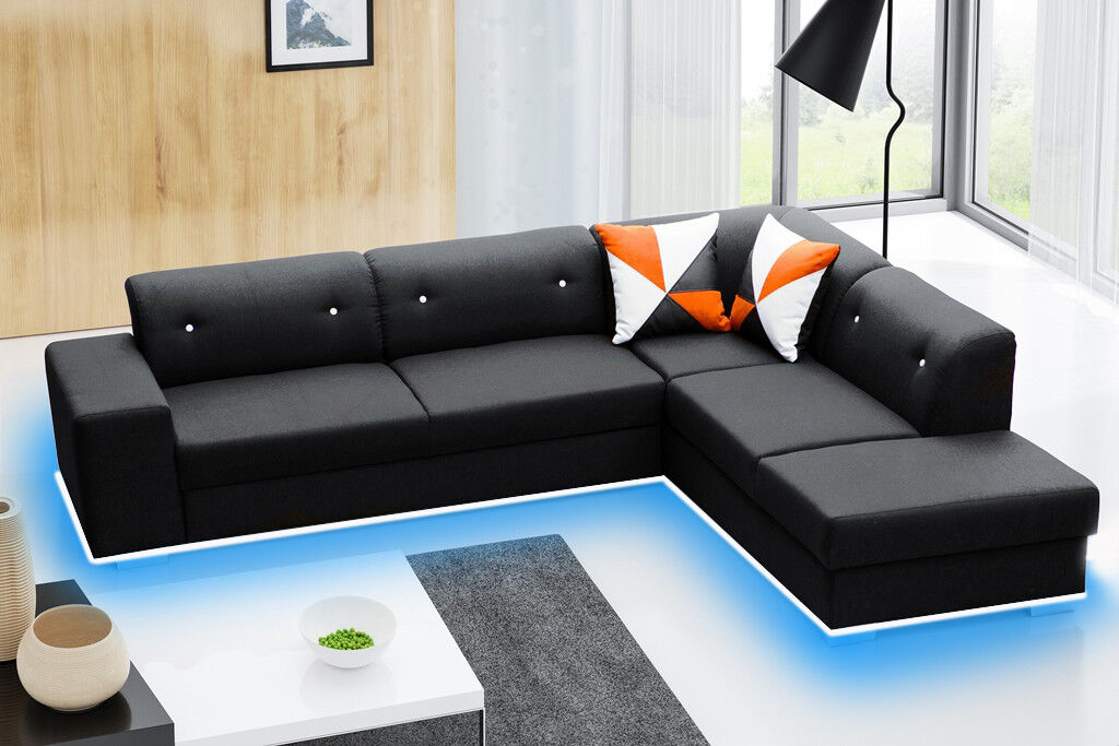 Sofa Slaapbank Designer Sofa met slaapfunctie + opbergruimte Hoekbank Bank NIEUW is de perfecte combinatie van stijl en functionaliteit voor jouw woonruimte. Met een afmeting van ongeveer 285 x 220 cm en een hoogte van ca. 80 cm biedt deze hoekbank royale zitruimte en wordt het een comfortabele slaapbank met een ligoppervlak van ca. 220 x 130 cm. De mogelijkheid om te kiezen uit verschillende materialen en kleuren zorgt ervoor dat je de bank kunt aanpassen aan jouw persoonlijke smaak en interieur. De L-vorm en het binnenframe van echt hout zorgen voor duurzaamheid en een stijlvolle uitstraling.