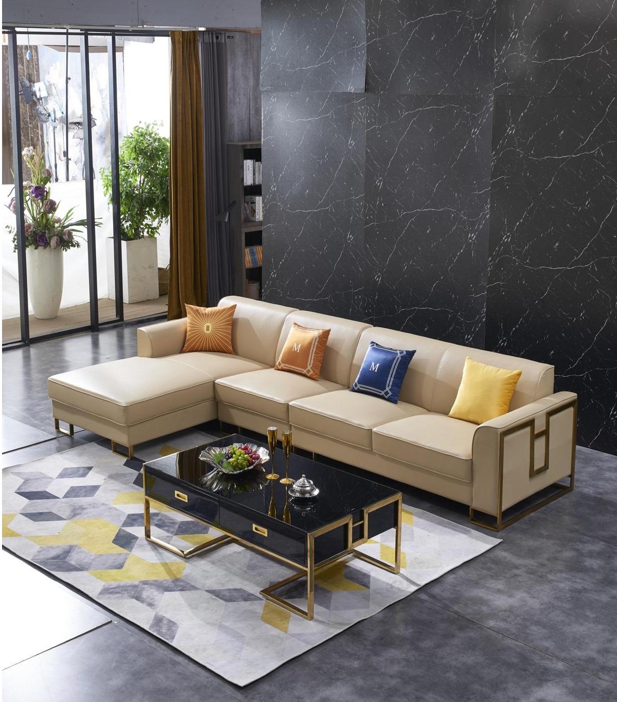 Met de Woonlandschap L Vorm Hoekbank Bank Ontwerp Bekledingsset Bank Hoek breng je stijl en comfort samen in je woonruimte. Deze elegante hoekbank is niet alleen een blikvanger dankzij zijn moderne design, maar biedt ook een royale zitplaats voor jou en je gasten. Het L-vormige ontwerp zorgt voor een gezellige en uitnodigende sfeer in elke kamer. Gemaakt van hoogwaardige materialen zoals hout, kunstleer en roestvrij staal, is deze bank duurzaam en gemakkelijk te onderhouden. De bank is voorzien van een echt houten binnenframe voor stevigheid en comfort, terwijl de vering zorgt voor optimale ondersteuning tijdens langdurig zitten.