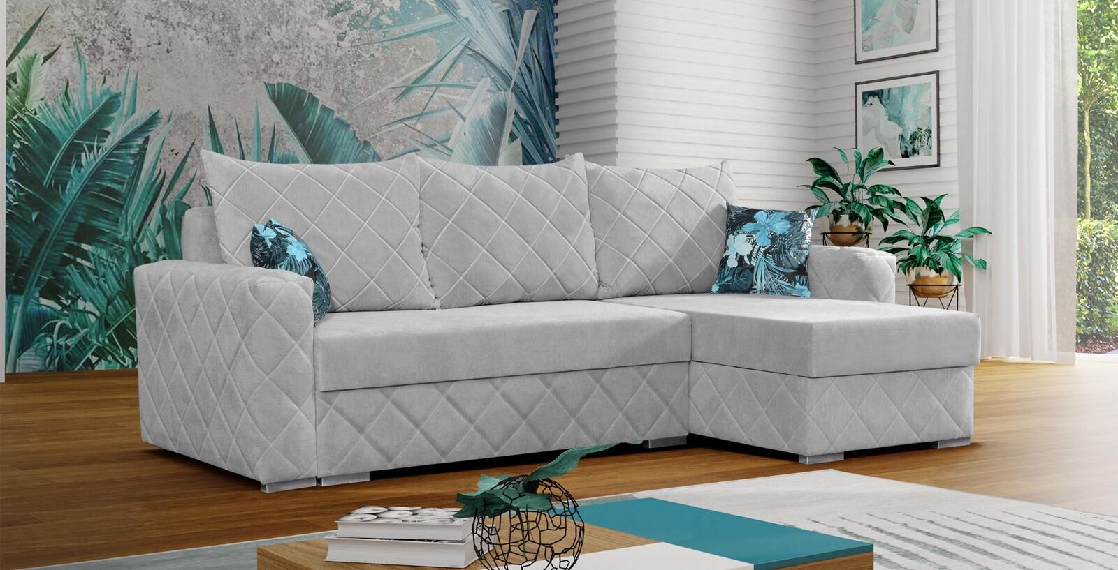 Met de Woonlandschap Luxe hoekbank slaapbank kast bekleding relax zitmeubel bank breng je elegantie en functionaliteit samen in je interieur. Deze veelzijdige hoekbank transformeert moeiteloos van een stijlvol zitmeubel naar een comfortabel slaapbank. Het binnenframe van echt hout zorgt voor duurzaamheid en stabiliteit, terwijl de vrije kleurkeuze de mogelijkheid biedt om de bank af te stemmen op jouw persoonlijke stijl.