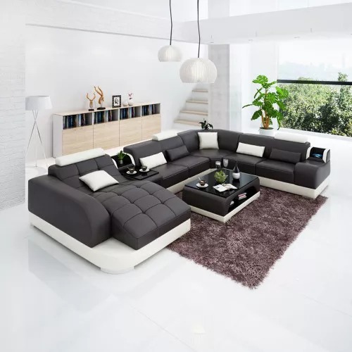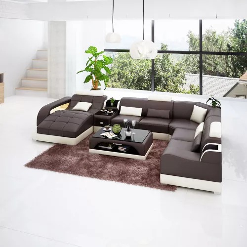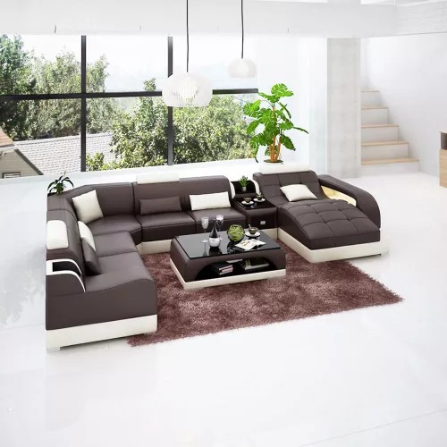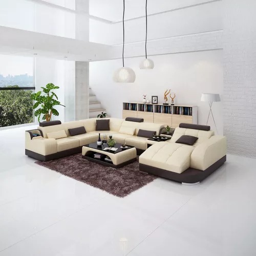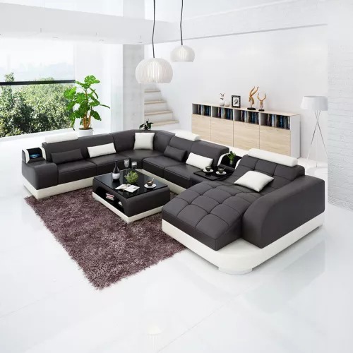 Koop een hoekbank in U-vorm, goedkoop, met leren bekleding, bank voor de woonkamer.