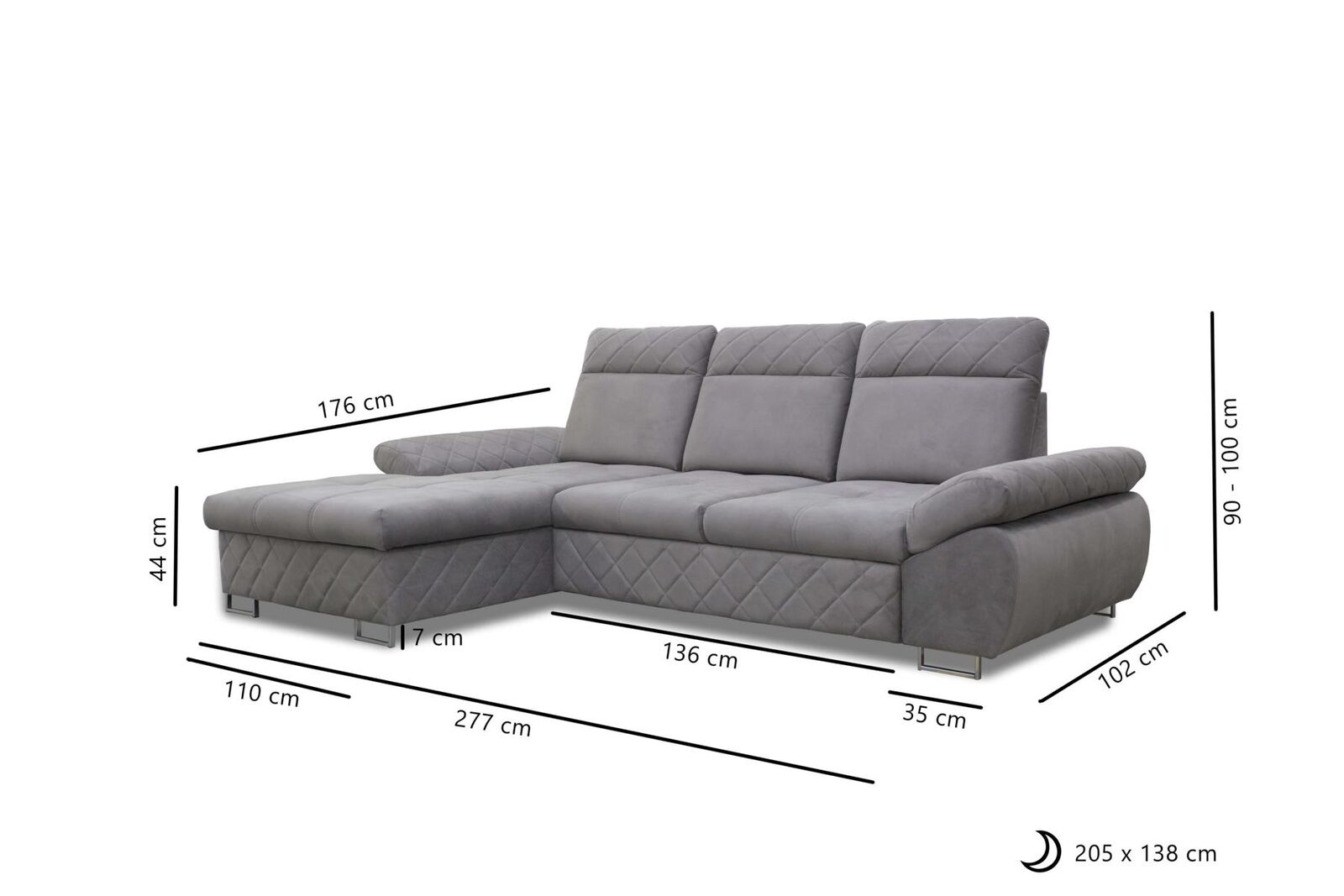 Deze hoekbank is niet alleen ideaal voor loungen en entertainen in de woonkamer, maar biedt ook een comfortabele slaapoplossing met een slaapgebied van ongeveer 138 x 205 cm. Of je nu wilt rusten of gasten wilt laten overnachten, deze bank is een handige en veelzijdige keuze. Met een zitdiepte van ongeveer 60 cm en een totale diepte van ongeveer 102 cm, zorgt deze moderne en functionele hoekbank voor een ergonomische en ontspannen zithouding. Breng stijl en functionaliteit in je woonkamer met deze prachtige hoekbank!