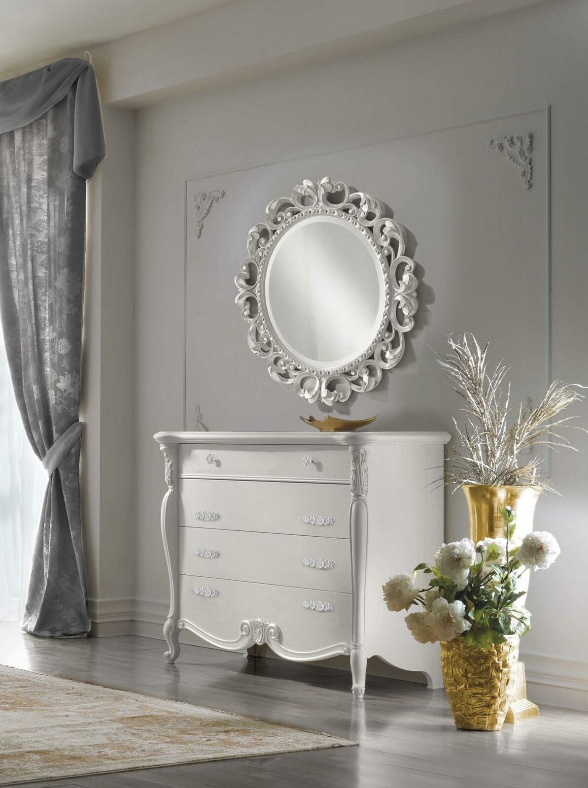 Klassieke slaapkamer commodes 2-delige set Barok Rococo commode + spiegel Nieuw: Deze prachtige set bestaat uit een klassieke commode en bijpassende spiegel, perfect voor het creëren van een elegante uitstraling in jouw slaapkamer. De commode heeft een afmeting van 132 x 55 x 103 cm en biedt voldoende opbergruimte voor kleding, accessoires en meer. De spiegel heeft een diameter van 86 cm en voegt niet alleen functionaliteit toe, maar ook een vleugje charme aan de ruimte. Gemaakt van hoogwaardig hout, is deze set duurzaam en stijlvol.