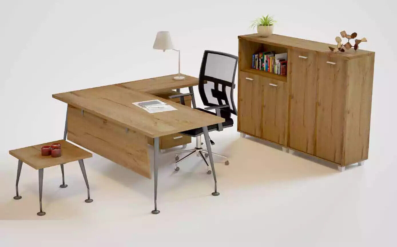 De Houten kantoorset hoekbureau dressoir 2x archiefkast salontafel 4-delige set biedt verschillende configuratiemogelijkheden om aan jouw specifieke behoeften te voldoen. Of het nu gaat om het organiseren van documenten in de archiefkasten, het creëren van een gezellige zithoek met de salontafel of het optimaliseren van je werkruimte met het hoekbureau, deze set past zich gemakkelijk aan aan verschillende opstellingen. De combinatie van functionaliteit en design maakt deze set geschikt voor zowel professionele kantoren als thuiswerkplekken. Met de Houten kantoorset haal je een duurzame en elegante oplossing in huis voor al je kantoorbehoeften.