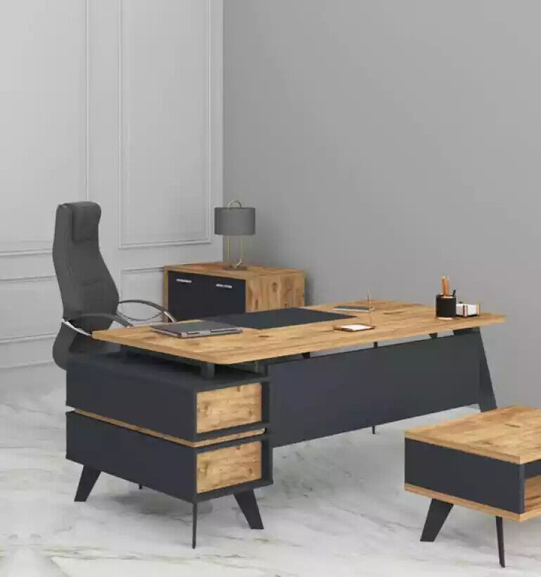 Doe uw kantoorruimte opleven met deze moderne kantoorschrijftafel. Als directeurstafel straalt dit meubelstuk klasse en professionaliteit uit. Met afmetingen van ongeveer 215,5 x 90 x 77 cm biedt deze tafel voldoende ruimte voor al uw werkbehoeften. Gemaakt van stevig hout in een stijlvolle kleur zoals afgebeeld, voegt deze tafel een vleugje elegantie toe aan elke kantooromgeving. De perfecte aanvulling op uw thuiskantoorinrichting, deze moderne kantoorschrijftafel is ontworpen met oog voor zowel functionaliteit als design.