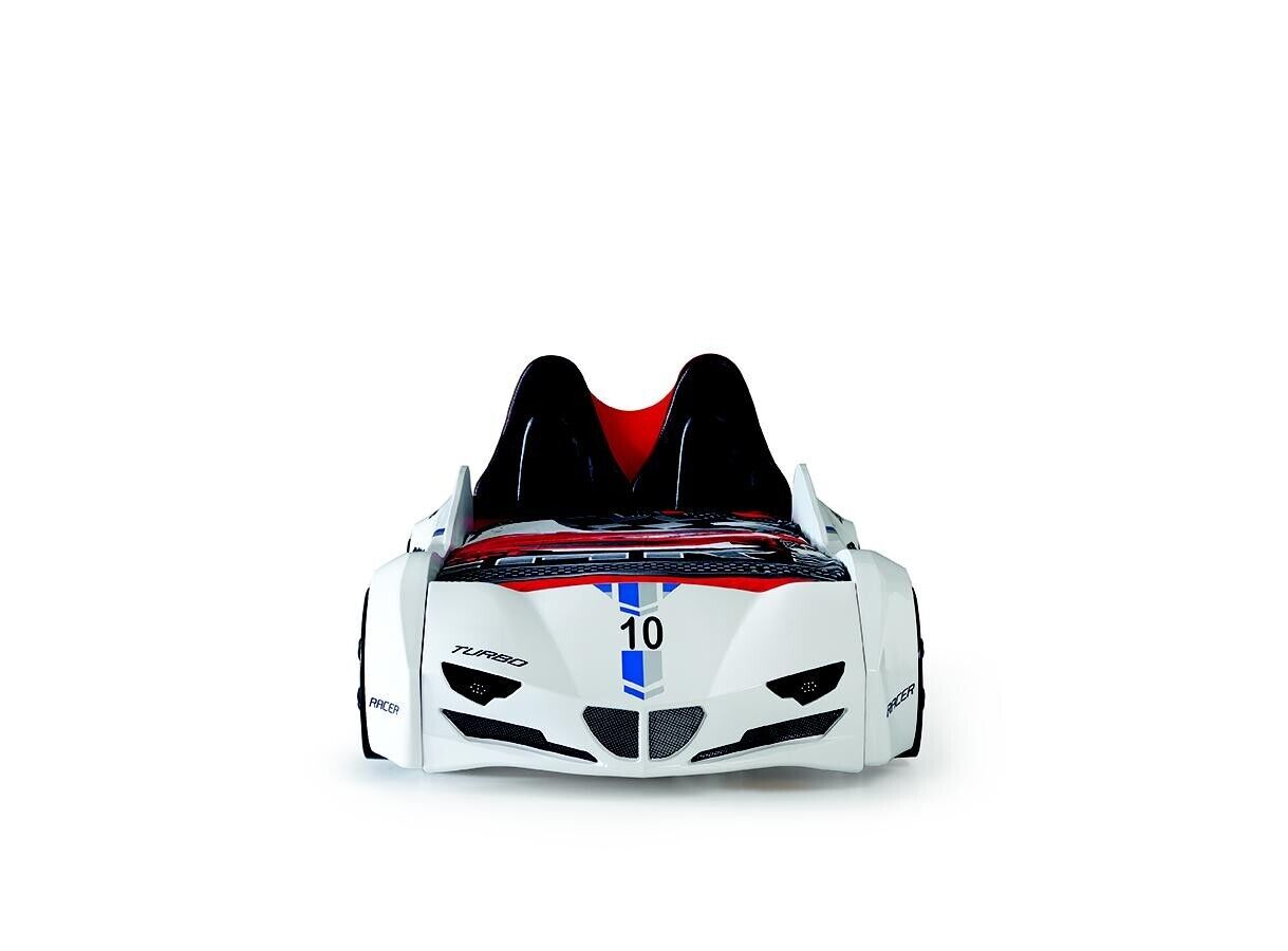 In dit Racecar-autobed zal je kind genieten van een goede nachtrust terwijl ze zich wanen in hun eigen racescenario. De opvallende en realistische details zullen het spelen en slapen nog leuker maken. Door de stoere uitstraling van dit autobed zal de kinderkamer getransformeerd worden tot een spannende en leuke ruimte. De duurzame houten constructie zorgt voor veiligheid en stabiliteit, terwijl het unieke ontwerp de verbeelding van je kind zal laten bloeien. Met dit autobed creëer je een opwindende omgeving voor je kind om te rusten en te spelen, waardoor het de perfecte keuze is voor elke kinderkamer.