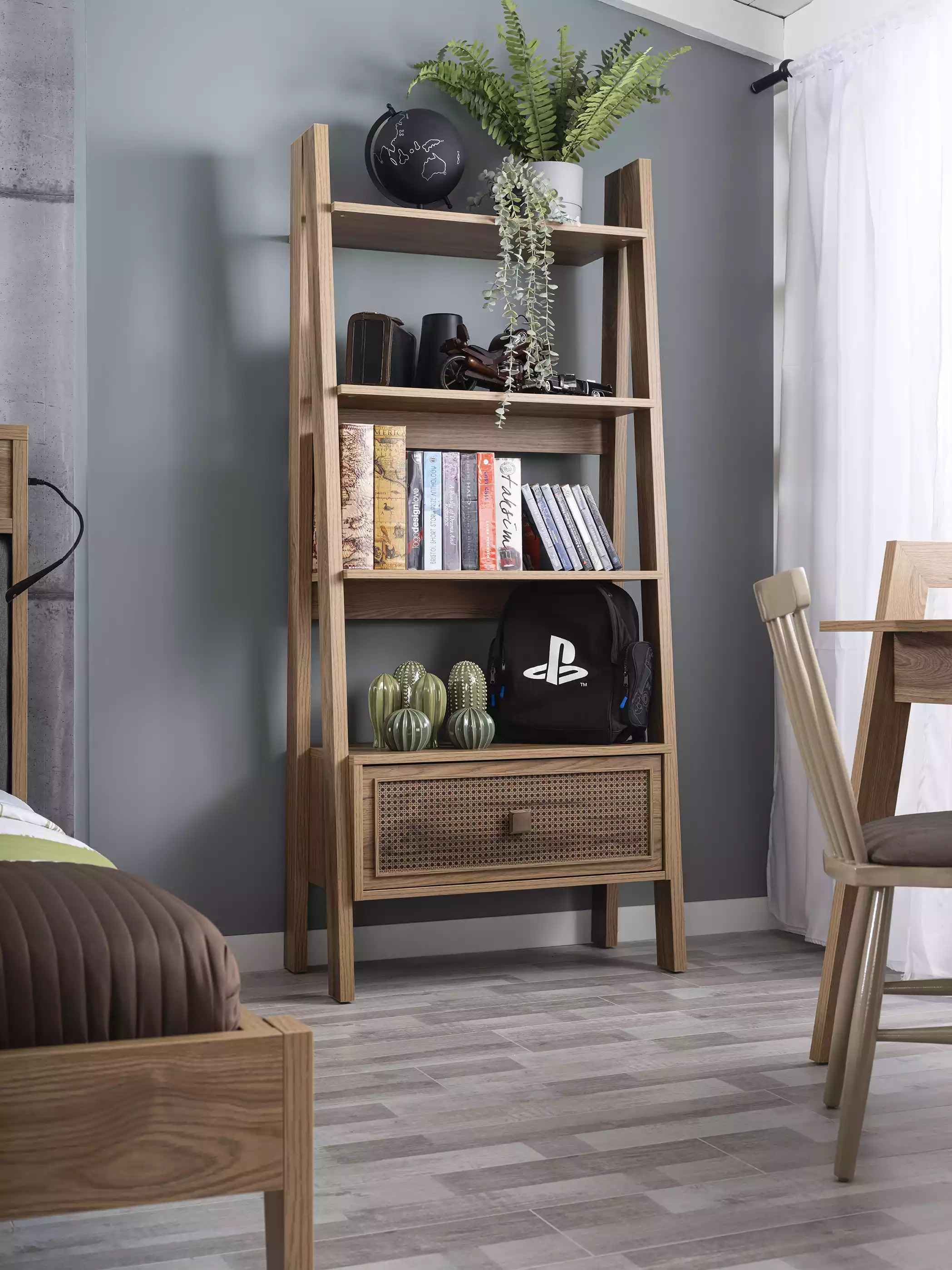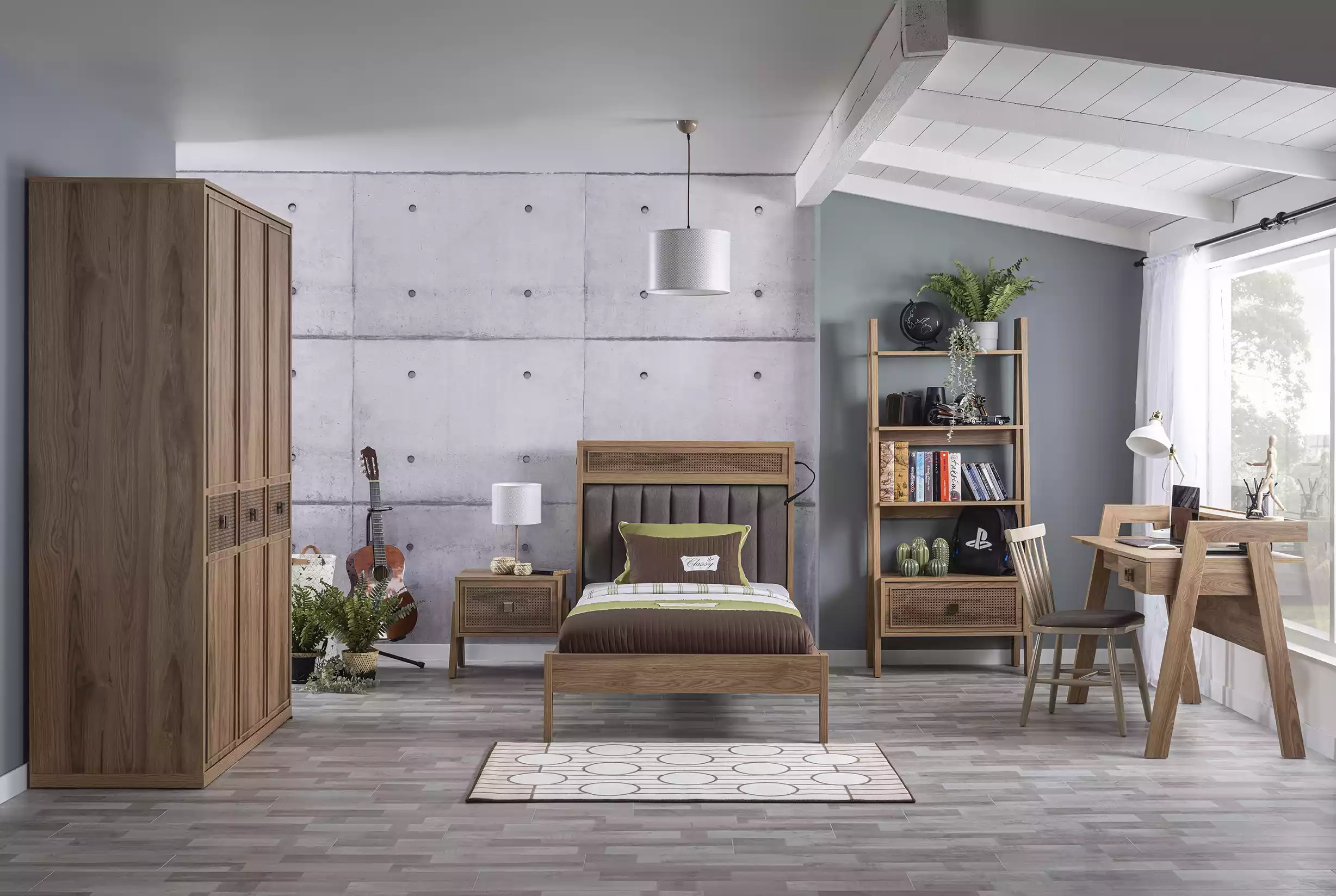 Inclusief een nachttafel, kledingkast, bureau en boekenkast, biedt deze set een complete slaapkameroplossing. De matrasoppervlakte van ca. 100 cm x 200 cm biedt voldoende ruimte voor een goede nachtrust. Of het nu gaat om studeren, lezen of opbergen, deze set voorziet in al uw behoeften. Geef uw slaapkamer een upgrade met dit prachtige en functionele houten meubelstuk. Geniet van comfort en stijl in één pakket!