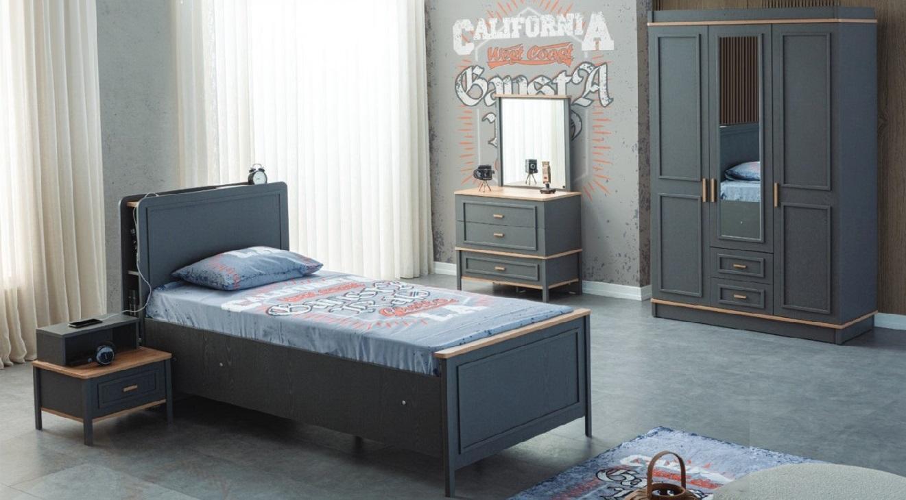 Kinderbed Kinderkamer Kindermeubelset Bed Grijs Hout Set 5-delig