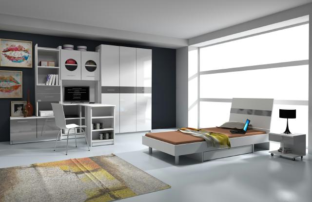 Slaapkamer set, bed, nachtkastje, bureau, plank, kasten, modern ontwerp, slaapkamer, hout