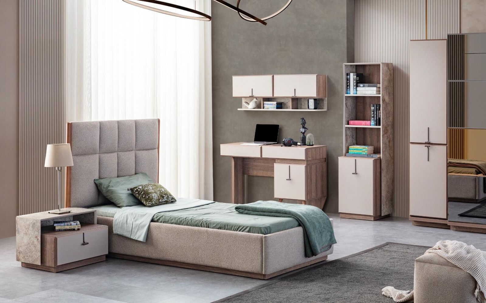 Kinderkamer meubel designer eenpersoonsbed hout nachtkastje bureau 4-delig.