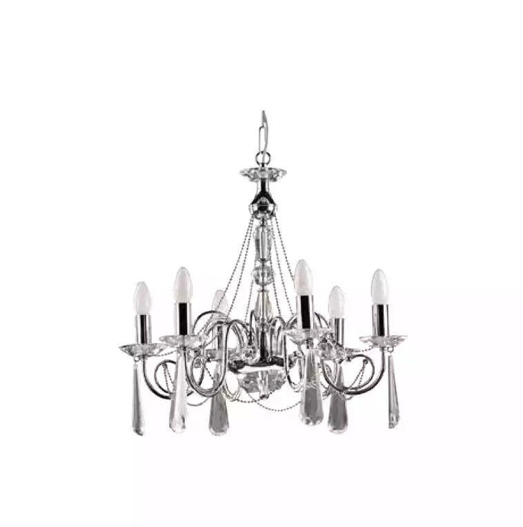 Zilveren luster hangende kroonluchter kroonluchter luxelamp moderne kunst is een prachtige toevoeging aan elk interieur. Met een uniek ontwerp en hoogwaardige materialen is deze moderne kunstzinnige kroonluchter een blikvanger in elke ruimte. De kroonluchter is voorzien van 6 lampjes en heeft een elegante combinatie van metaal en kristal wat zorgt voor een luxueuze uitstraling. De afmetingen van deze kroonluchter zijn Ø 58 cm x 90 cm, waardoor het perfect is voor ruimtes die een statement nodig hebben.
