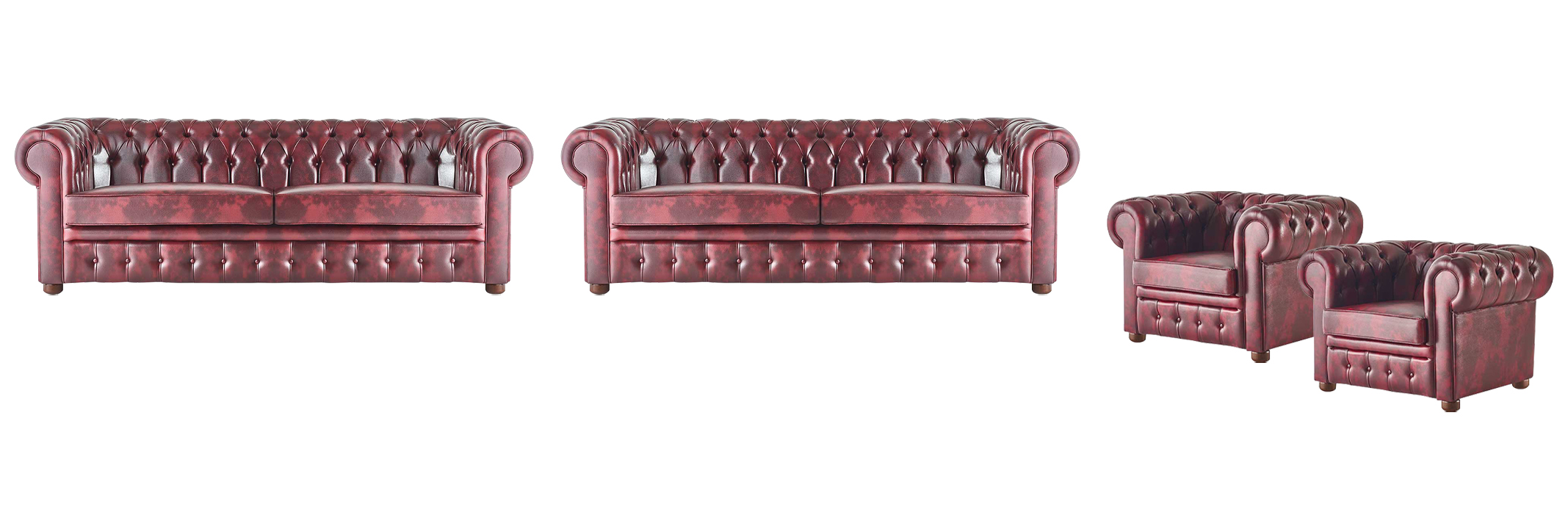 Lederset van leder 3-zits fauteuil Bordeaux Chesterfield gestoffeerd sofa leer 4-delig