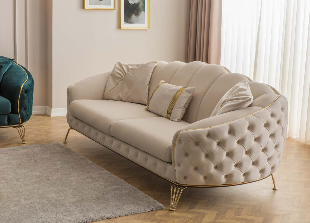 Modern beige woonkamer set sofa 3-zits fauteuil textiel fauteuil woonkamer