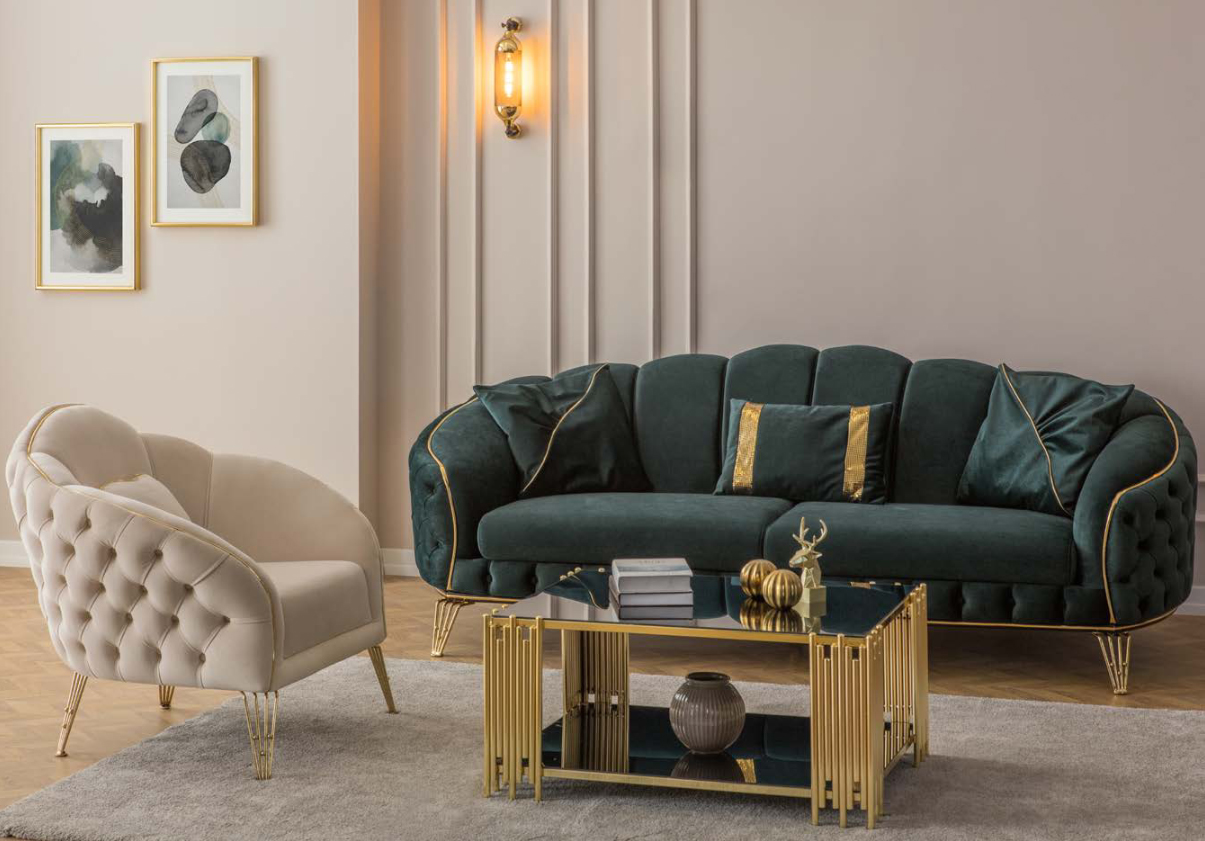 De 'Modern woonkamer set driezitsbank fauteuil textiel fauteuil woonkamer nieuw' is een stijlvolle en comfortabele toevoeging aan uw woonkamer. De set bestaat uit een ruime 3-zitsbank en een bijpassende fauteuil, perfect voor zowel ontspanning als het ontvangen van gasten. Met een lengte van ongeveer 247 cm biedt de 3-zitsbank voldoende ruimte voor het hele gezin, terwijl de fauteuil met een breedte van ca. 86 cm een knusse plek biedt voor persoonlijke ontspanning. De zithoogte van beide stukken is ongeveer 44 cm, wat zorgt voor een comfortabele zitervaring en maakt het eenvoudig om in en uit de bank of fauteuil te stappen. Deze set is gemaakt van een combinatie van hoogwaardige materialen, zoals hout, textiel en metaal, waardoor duurzaamheid en een moderne uitstraling gegarandeerd zijn.