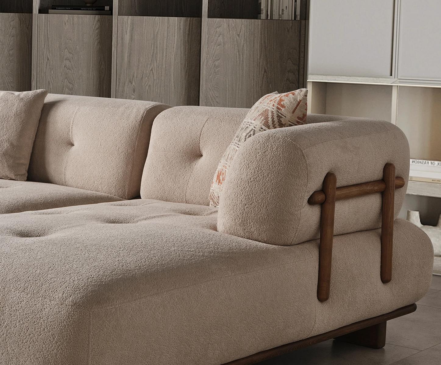 Geniet van ultiem comfort en modern design met deze stijlvolle hoekbank. De L-vorm biedt veel ruimte om te ontspannen en past perfect in elke woonomgeving. De elegante beige kleur geeft uw woonkamer een warme en uitnodigende sfeer.