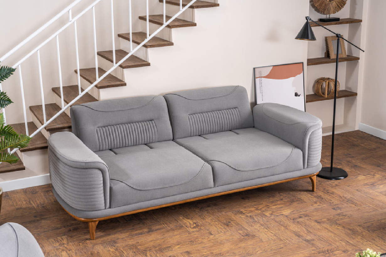 Modern grijs 2-delig woonkamerstel driezitsbank en fauteuil
