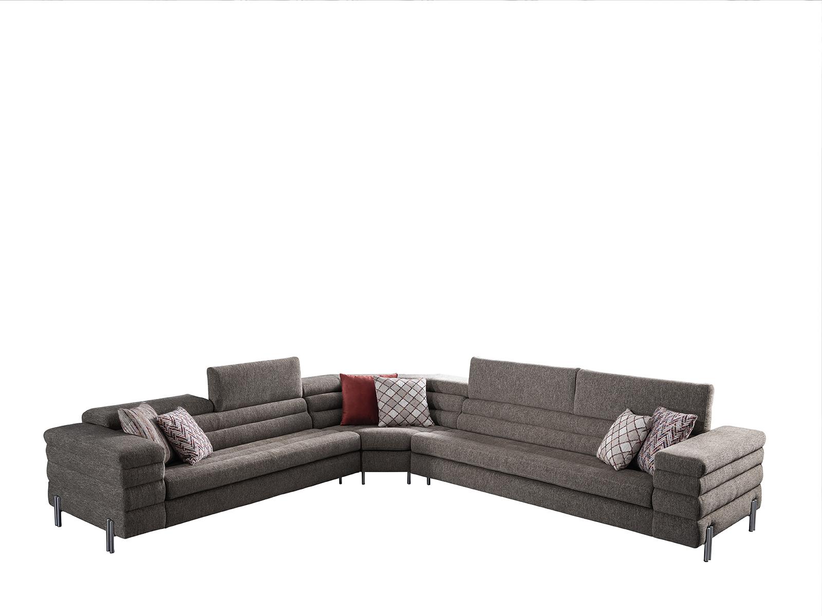 Modern beige L-vorm hoekbank woonkamer gestoffeerde banken houten frame.