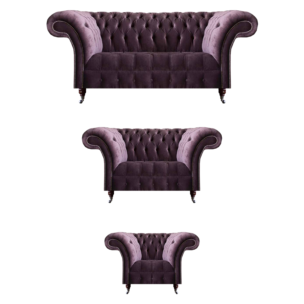 Stijlvolle Chesterfield paarse bankset zitset 3-zits 2-zits fauteuil.