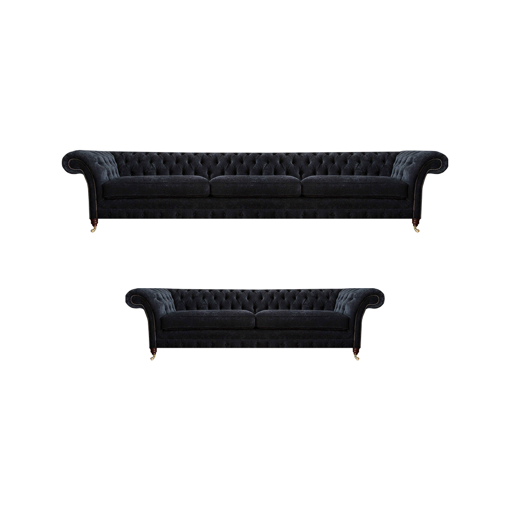 De 'Zwarte Chesterfield gestoffeerde banken Designer woonkamers textiel sofa's' bieden een combinatie van klassieke elegantie en moderne functionaliteit. Met een ruime keuze uit een 3-zitsbank van **ca. 220 x 90 x 80 cm**, een 2-zitsbank van **ca. 180 x 90 x 80 cm**, of optionele varianten zoals een 4-zitsbank en een 1-zitter, passen deze banken prachtig in elke woonkamer. Een **zithoogte van 42 cm** en **zitdiepte van 52 cm** zorgen voor optimaal zitcomfort. De banken zijn beschikbaar in zwart, met de mogelijkheid om andere kleuren op aanvraag te kiezen, en het gebruik van premium materialen zoals kunstleer, echt leder, fluweel en vlekbestendige stoffen biedt veelzijdigheid zonder concessies te doen aan stijl.