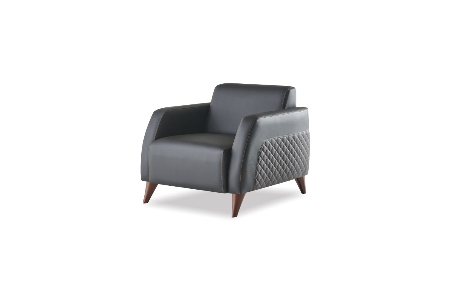 Fauteuil Zwart Lederen Relaxfauteuil Modern Hout Zachte Armleuningen 1-Zitter