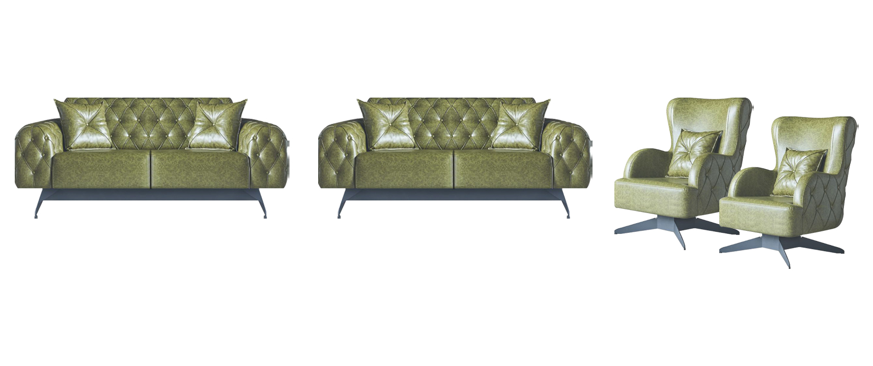 Sofa-Set Kussen Kussen 2-Zitter Leren Fauteuil Groen Zitmeubel Chesterfield