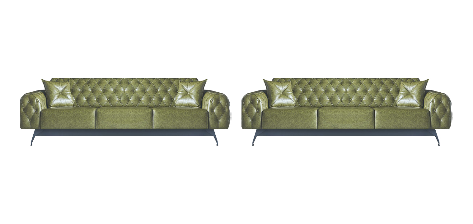 Maak kennis met de 'Sofagarnituren Chesterfield Sofa-Set 3-Zitsbanken Sofa's Groen Klassiek Kussens', een toonbeeld van elegantie en comfort voor elke woonkamer. Deze klassieke set, bestaande uit twee 3-zitsbanken, heeft een indrukwekkende afmeting van ca. 245 x 90 x 75 cm per sofa. De banken bieden niet alleen een koninklijke uitstraling, maar dankzij hun zithoogte van ca. 44 cm en zitdiepte van ca. 56 cm, ook ongeëvenaard comfort. De groene kleur voegt een vleugje verfijning toe aan elk interieur, terwijl de hoogwaardige materialen zoals hout, roestvrij staal en kunstleer zorgen voor duurzaamheid en een luxe gevoel. Bij aanvragen zijn andere kleuren ook beschikbaar, waardoor de set aan ieders smaak en interieur kan worden aangepast.