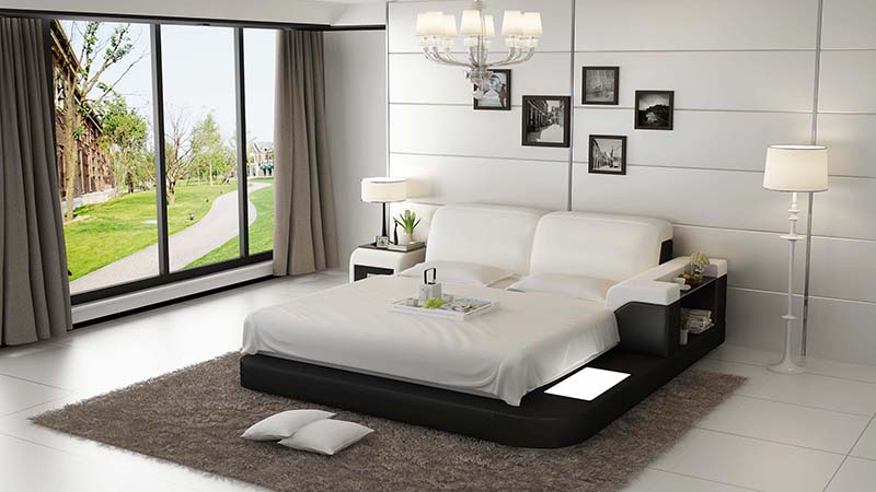 Ontwerpbed XXL Groot Bed Lederen Bekleding Hotel 200x200cm Multifunctioneel Plank USB