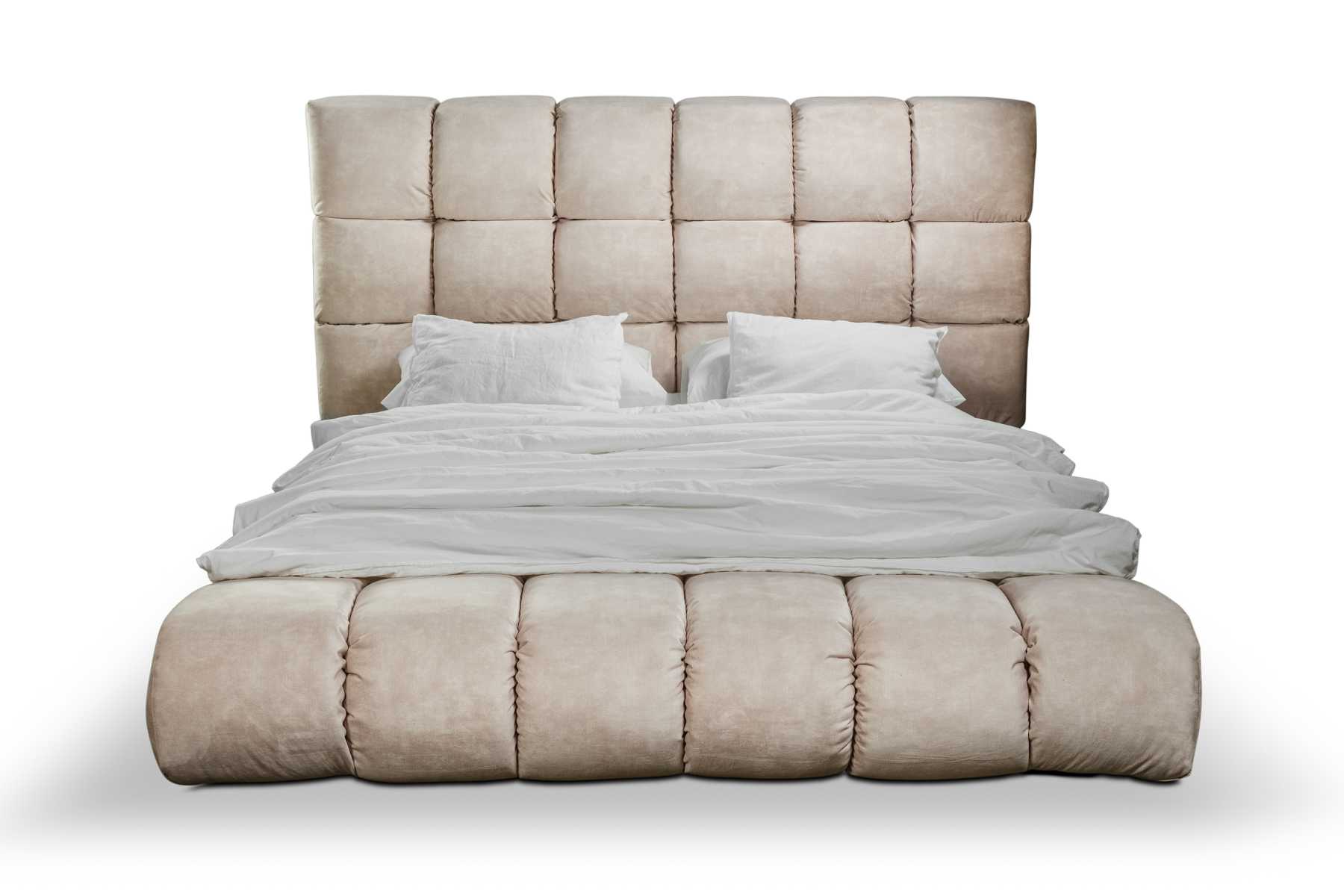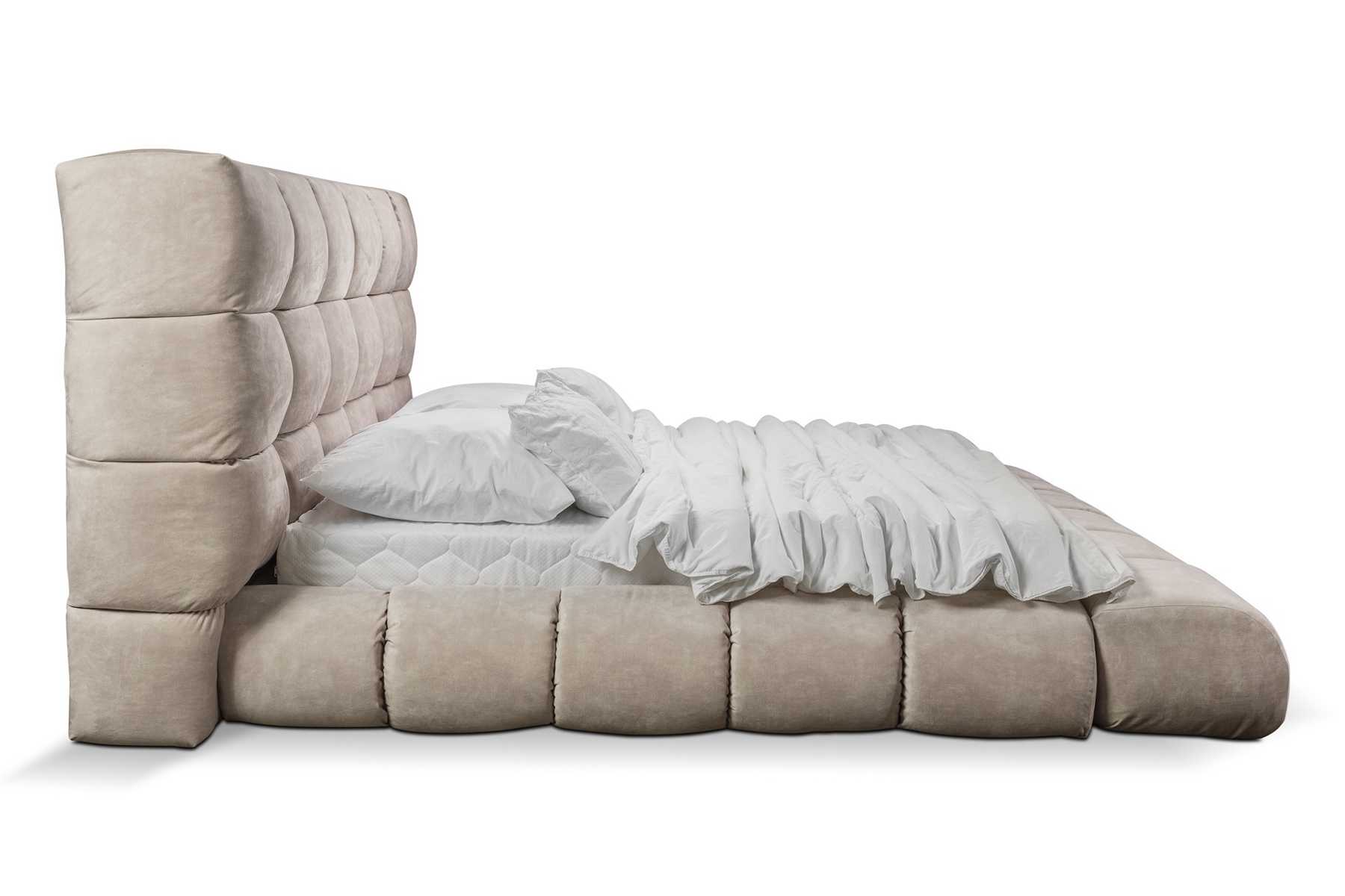 Luxe pluchen bed in grote handige slaapkamer designer bed Nieuw Binnenruimte is een exclusief en luxueus bed dat elke slaapkamer transformeert tot een elegant en uitnodigend toevluchtsoord. Met zijn afmetingen van ca. 220 x 260 x 125 cm biedt dit bed een ruime en comfortabele slaapervaring. De kwaliteit van het houten frame en textielen bekleding zorgen voor duurzaamheid en stijl, terwijl het ligoppervlak van ca. 180 x 200 cm voldoende ruimte biedt voor een goede nachtrust.