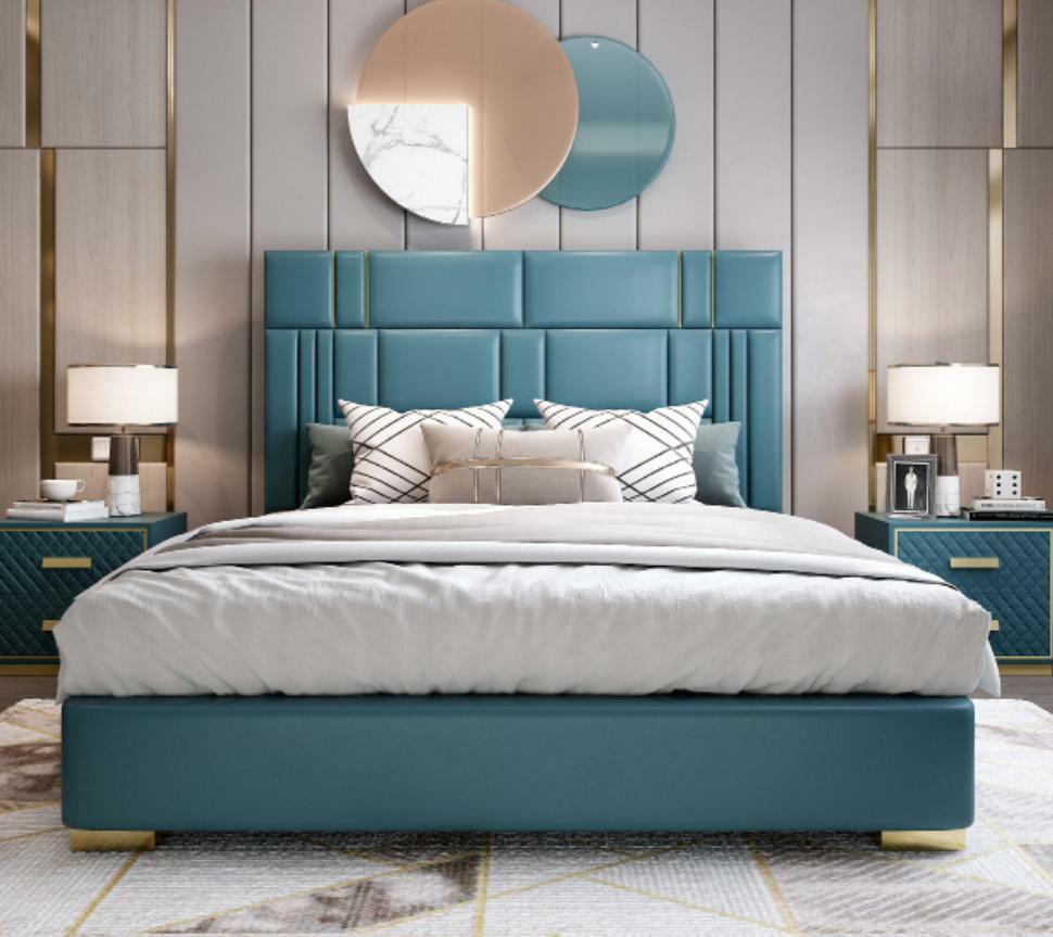 Met onze luxueuze hotelbedden met een tweepersoons gevoerd bedframe van 180x200 geniet u van ultiem comfort en stijl in uw slaapkamer. Het bed BL008 heeft een royaal ligoppervlak van circa 180 x 200 cm, perfect voor een goede nachtrust. Met afmetingen van ongeveer 213 x 182 x 147 cm biedt dit bed een ruime slaapomgeving. De hoogwaardige materialen, waaronder hout, RVS en kunstleer, zorgen voor duurzaamheid en een luxe uitstraling. Het stevige binnenframe van echt hout garandeert stabiliteit en langdurig gebruik.