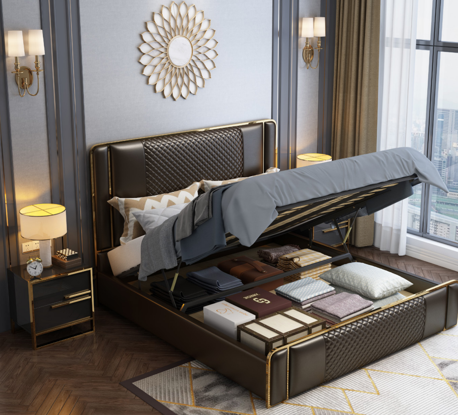 Luxe designerbed voor de slaapkamer, bekleed met fluweel, meubelbedden stof